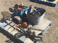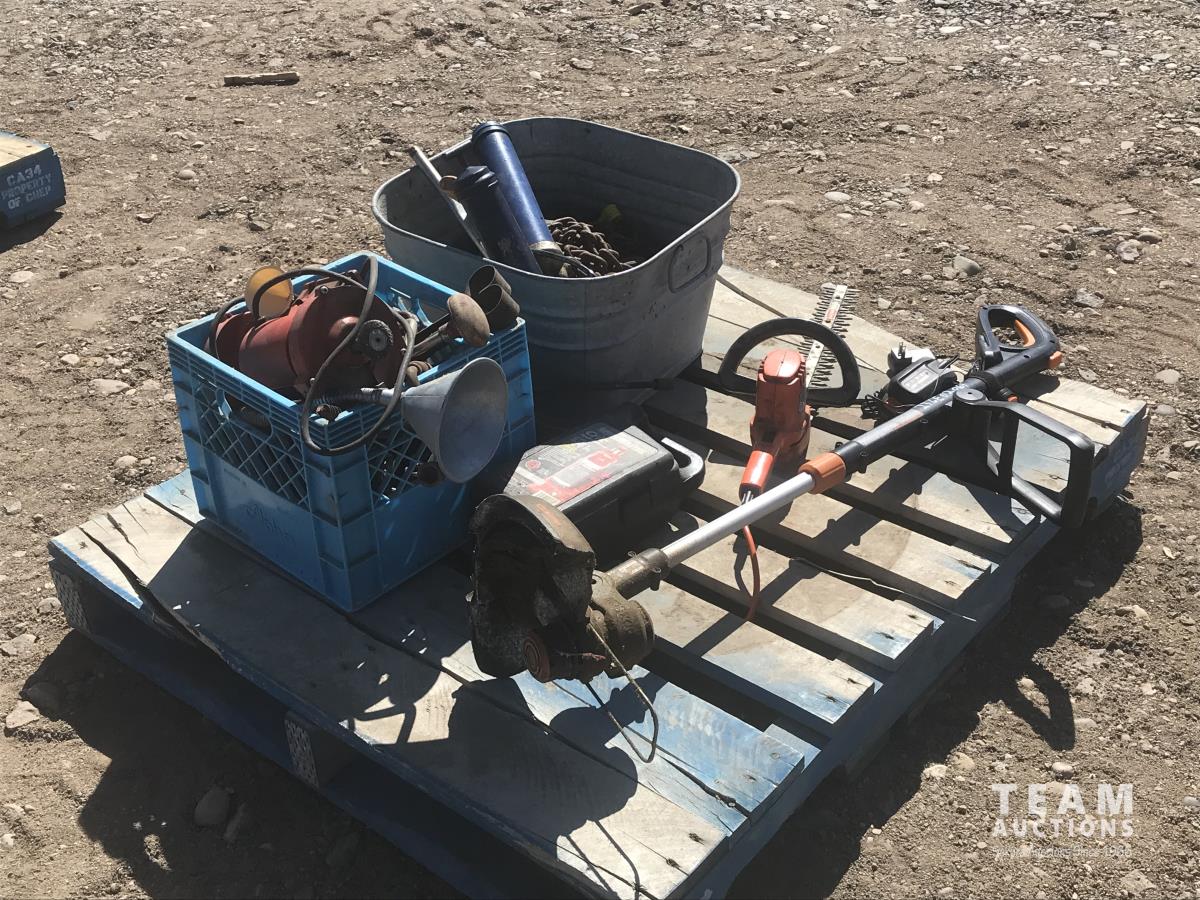 1275 Qty of Tools W/ (2) Grease Guns, Electric Weed Eater, Electric Hedge Trimmer, Bench Grinder
