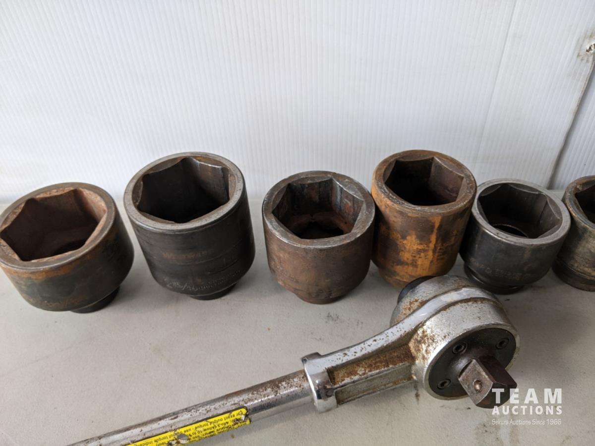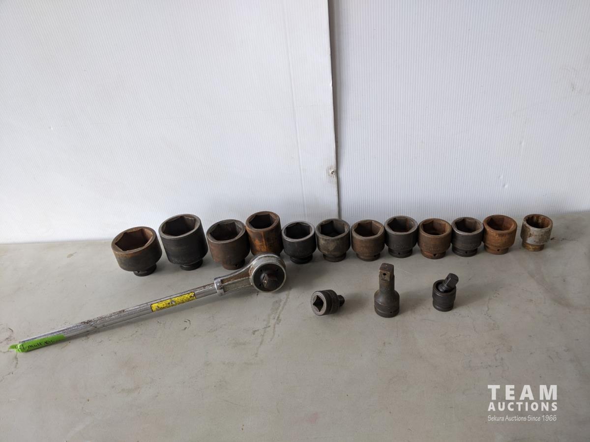 (12) 1 inch drive sockets: 3-1/8 inch to 1-13/16 inch, (1) 3/4 inch drive to 1 inch drive adaptor, 2 inch extension (1 inch drive), 3/4 inch drive impact universal joint