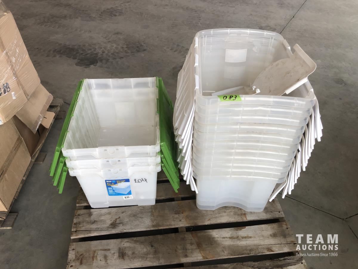 2507 (11) Large Plastic Totes and (3) Medium Plastic Totes