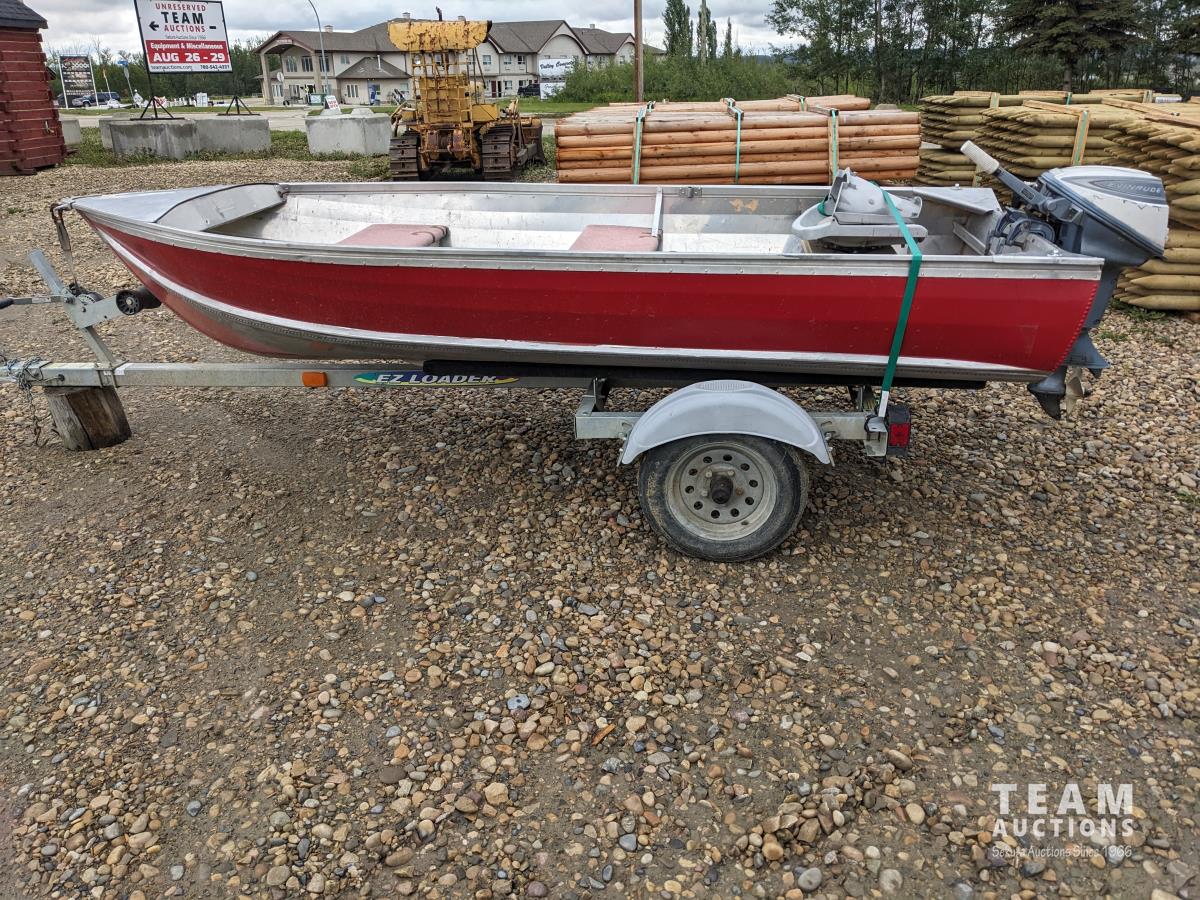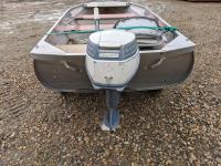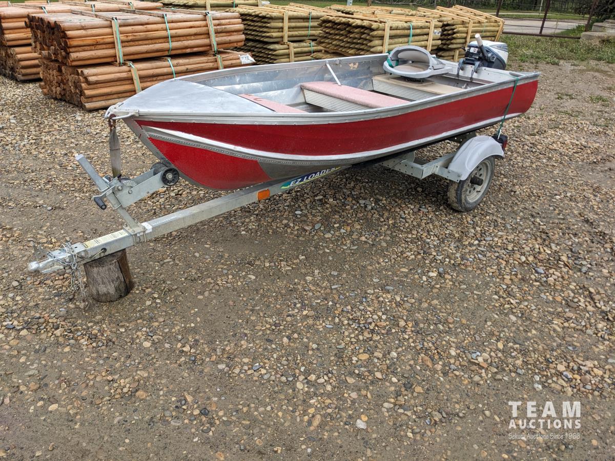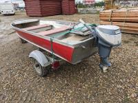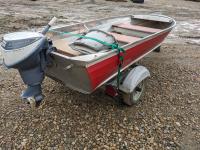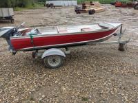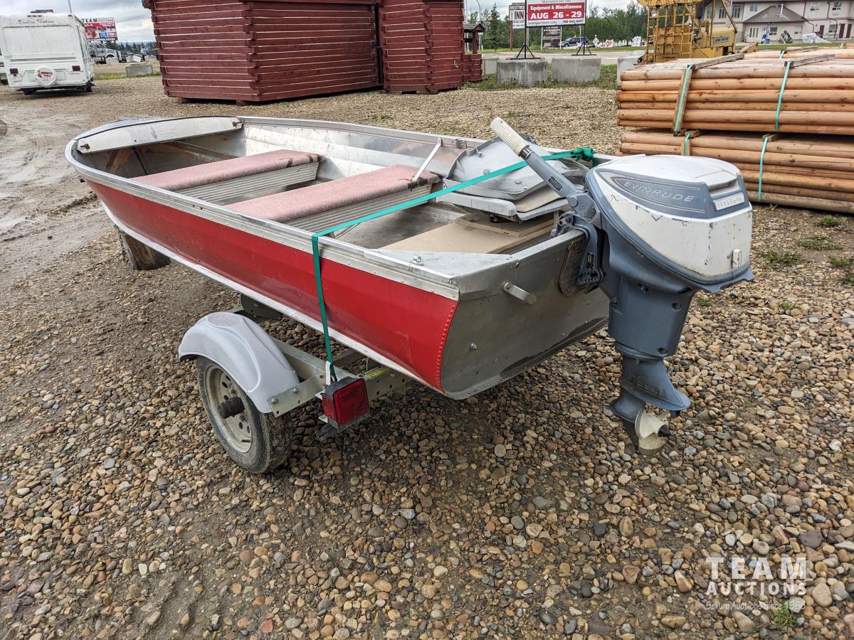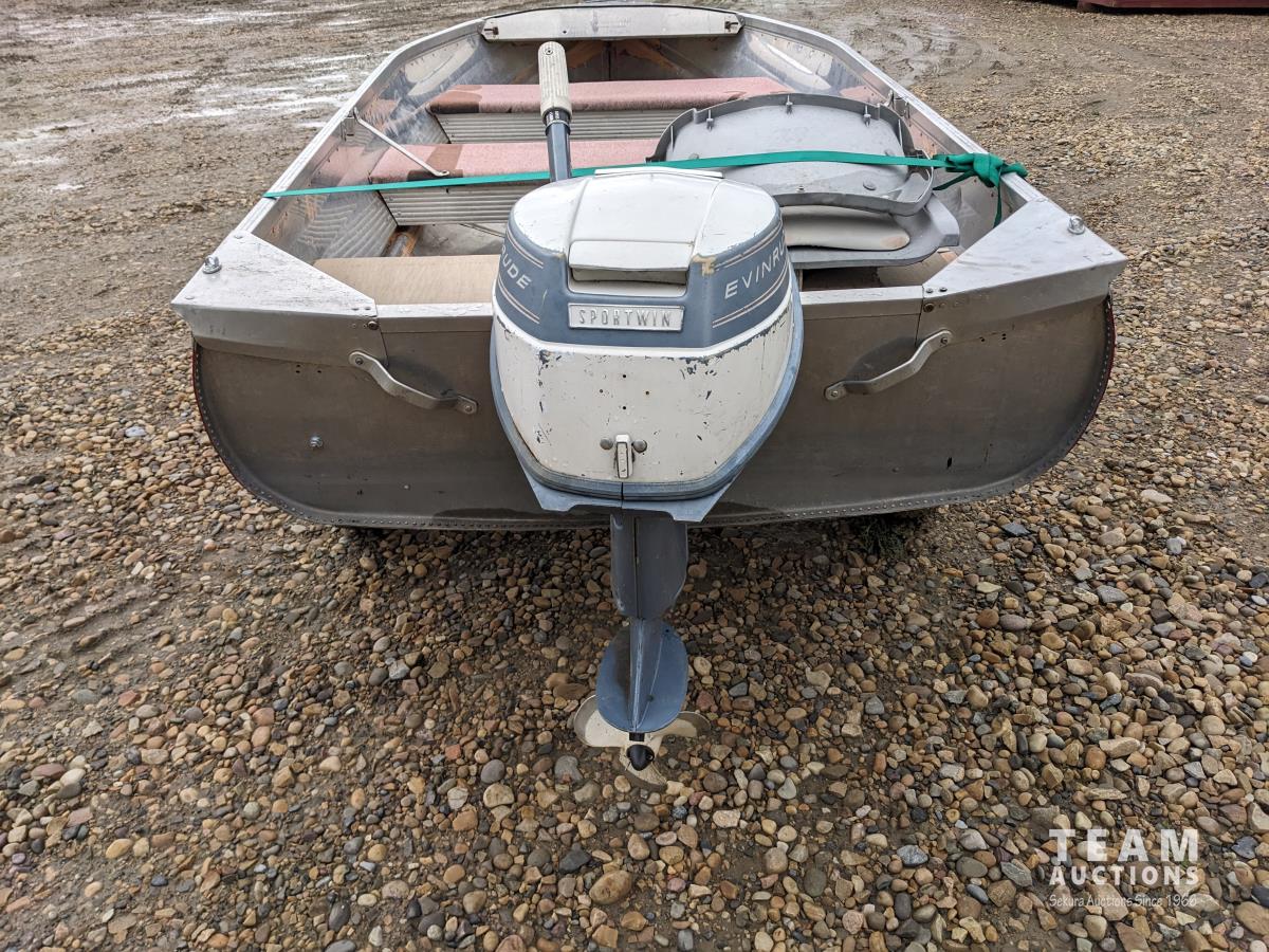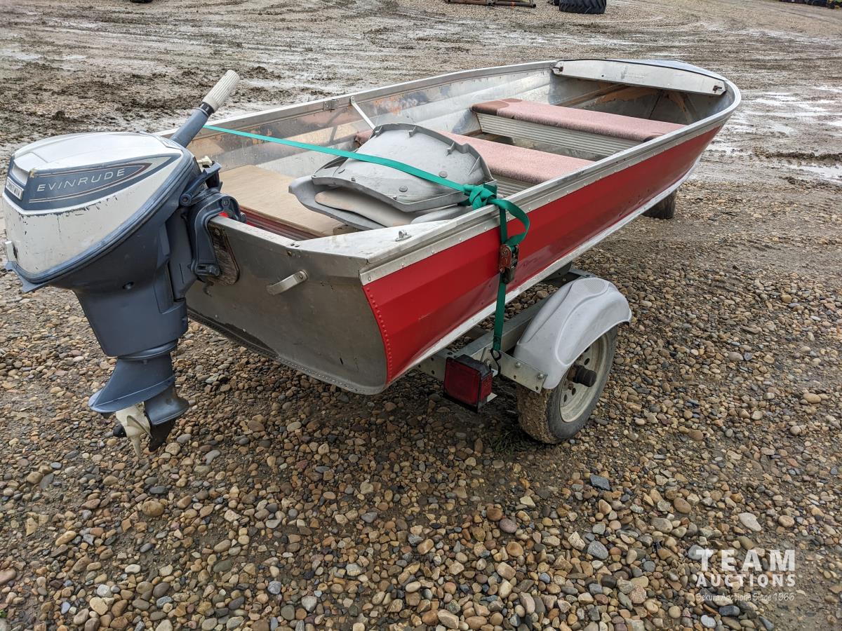 55 inch wide, Evinrude 9.9 HP motor, S/A trailer, 5.30-12 tires