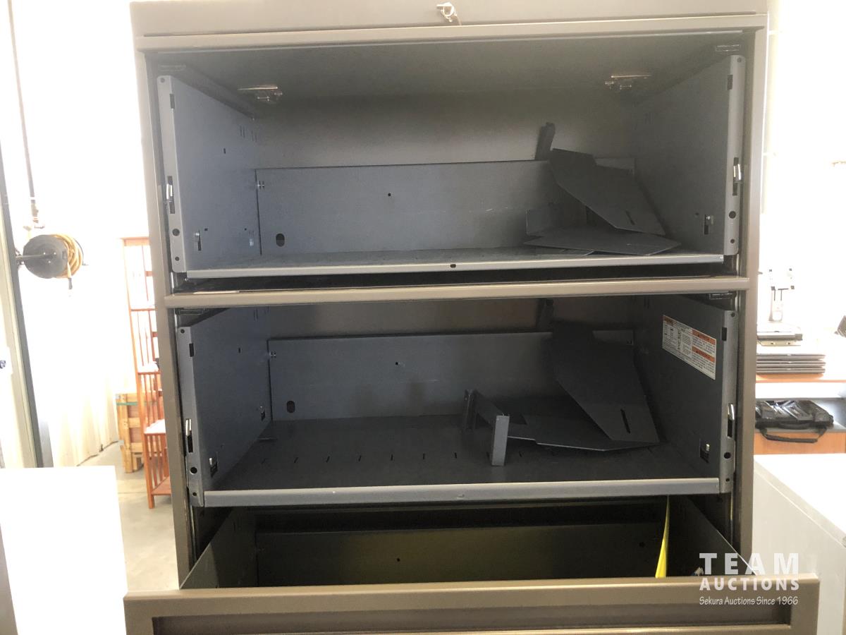 (1) Six drawer: 30 inch l x 18 inch d x 76.5 inch h, (1) three drawer: 36 inch l x 18 inch d x 40 inch h