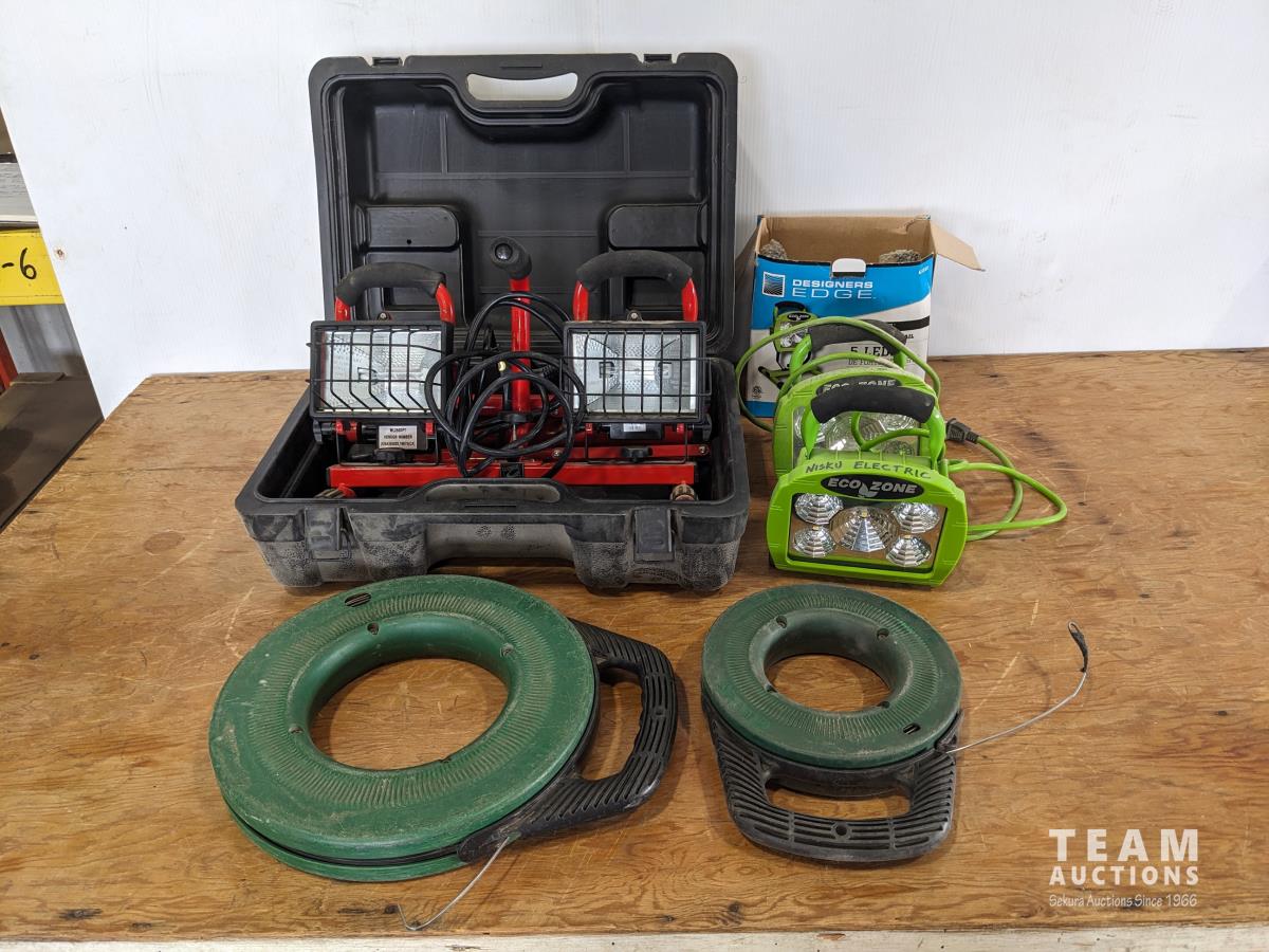 1485 (2) Sets of Work Lights and (2) Greenlee Fish Tape