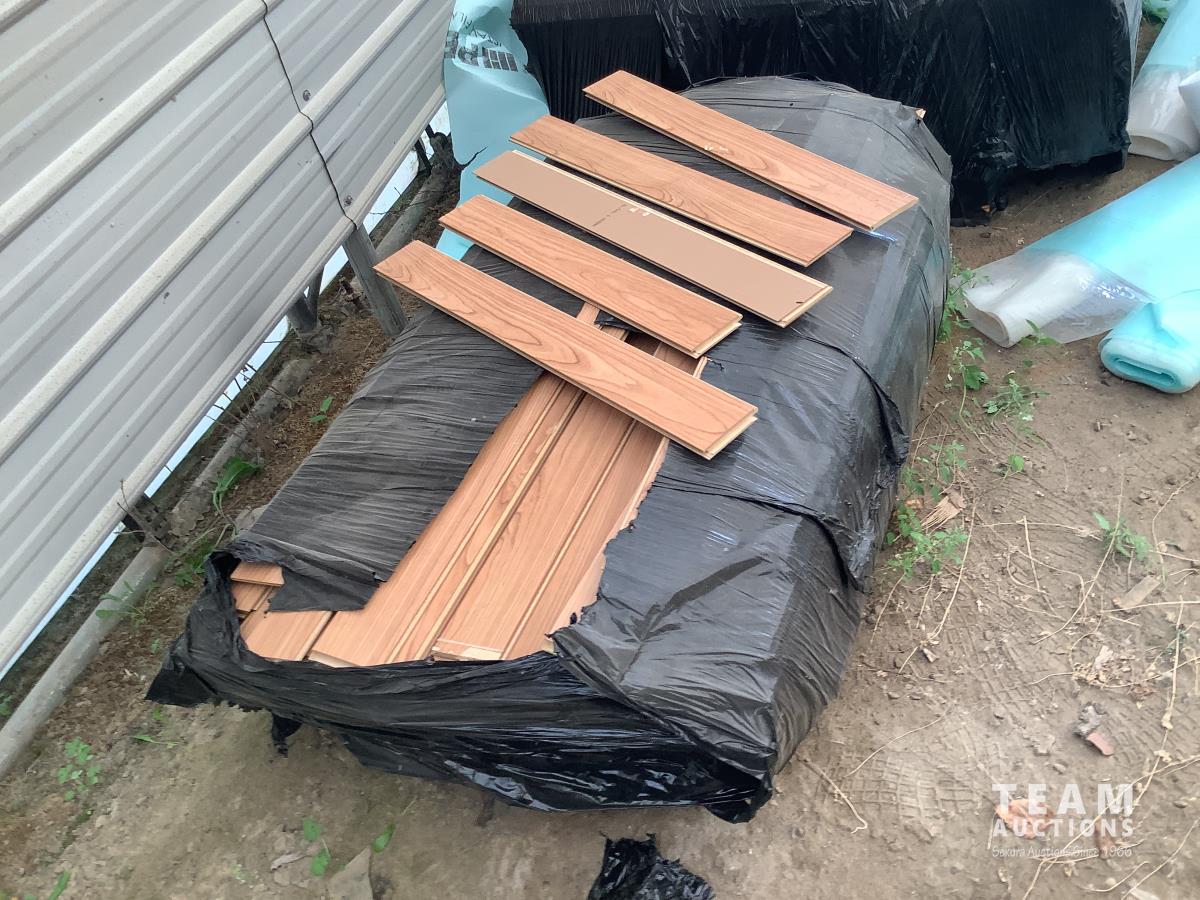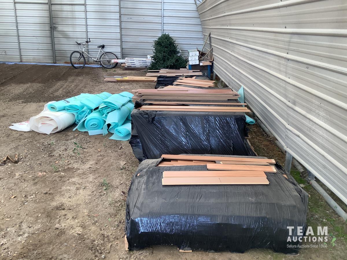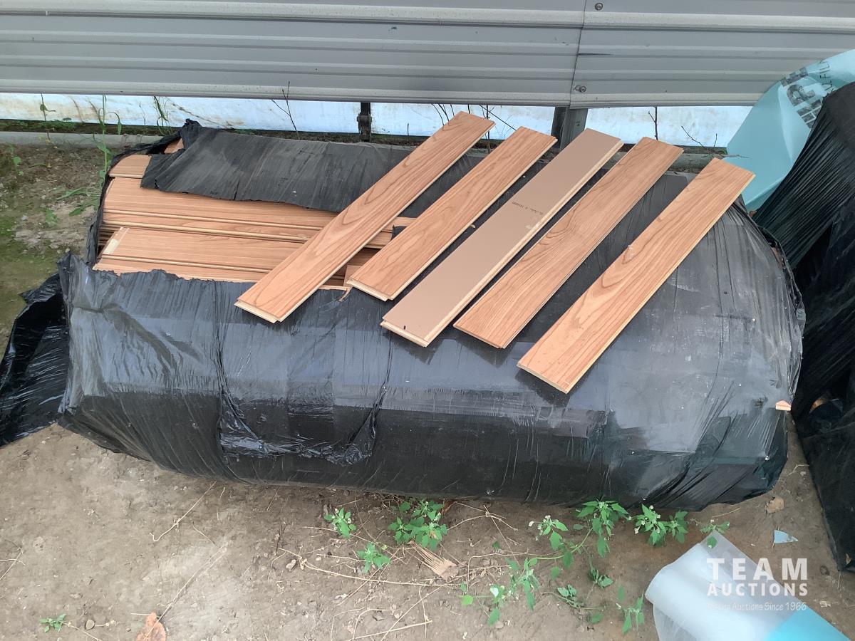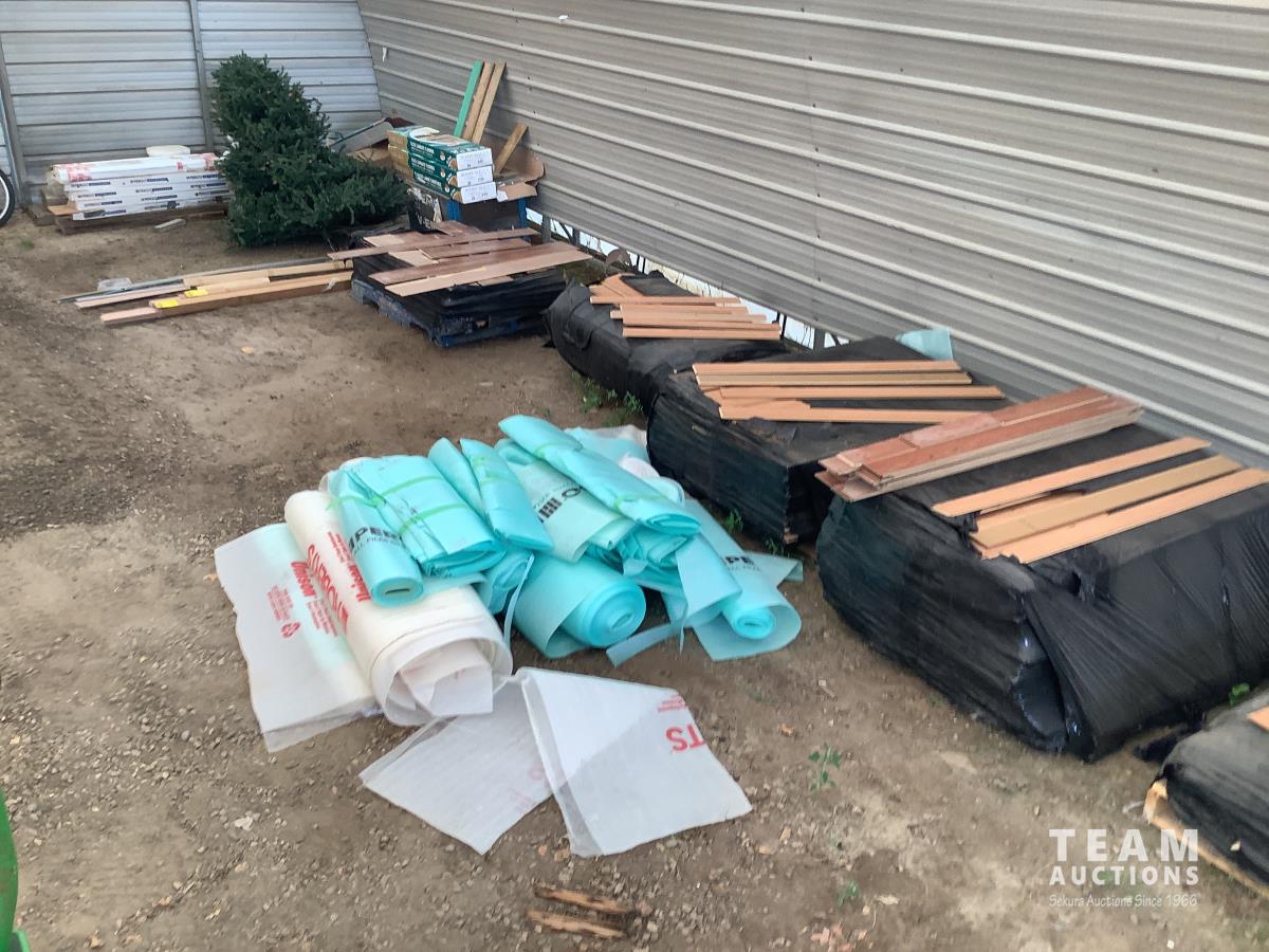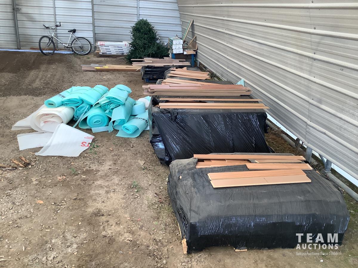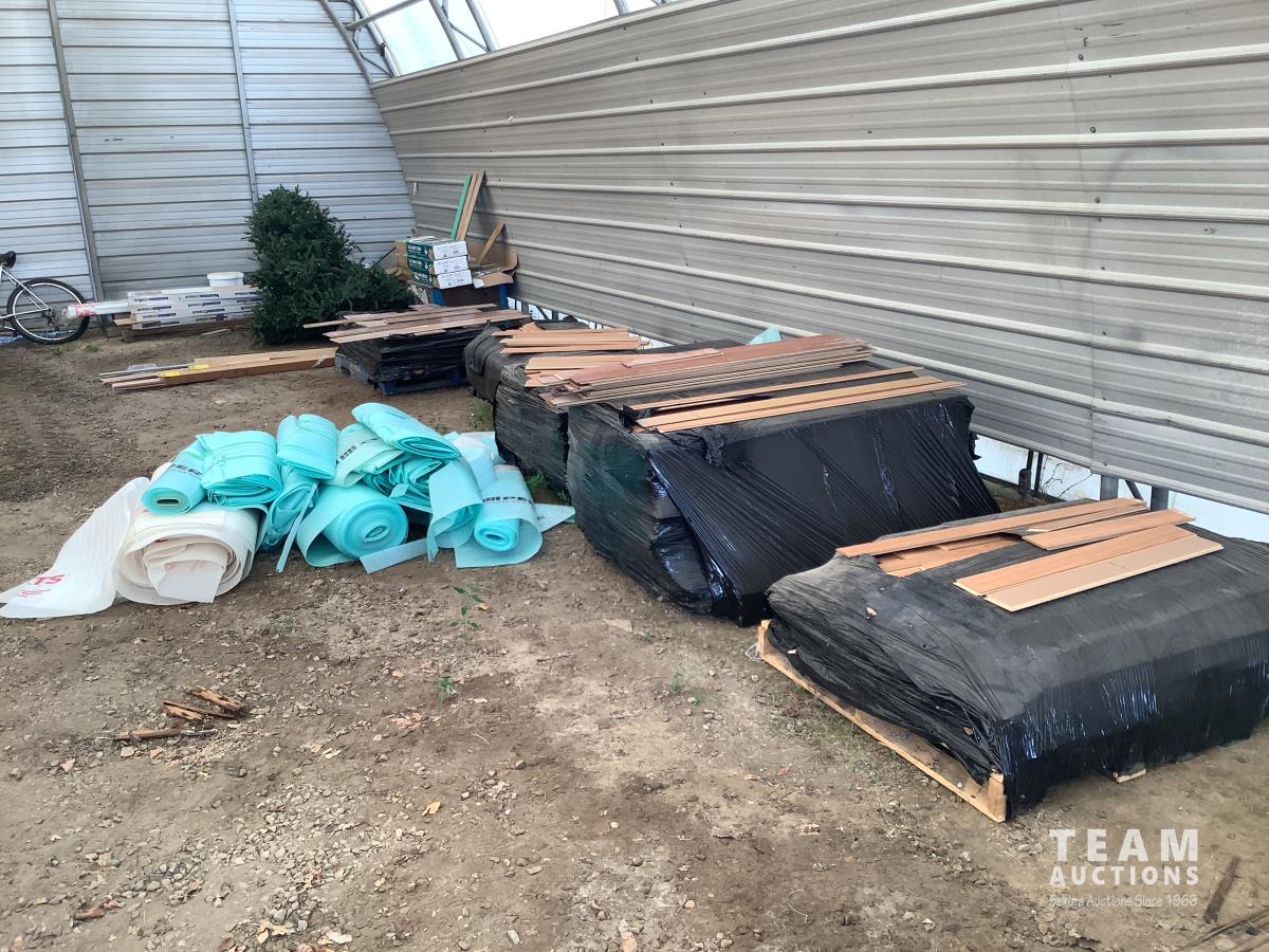All under lay, (4) pallets some slightly used, (1) pallet of used flooring, all new trim