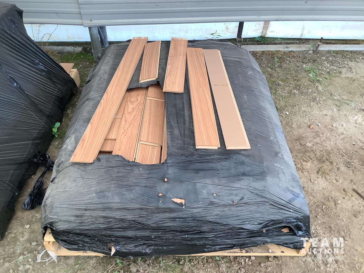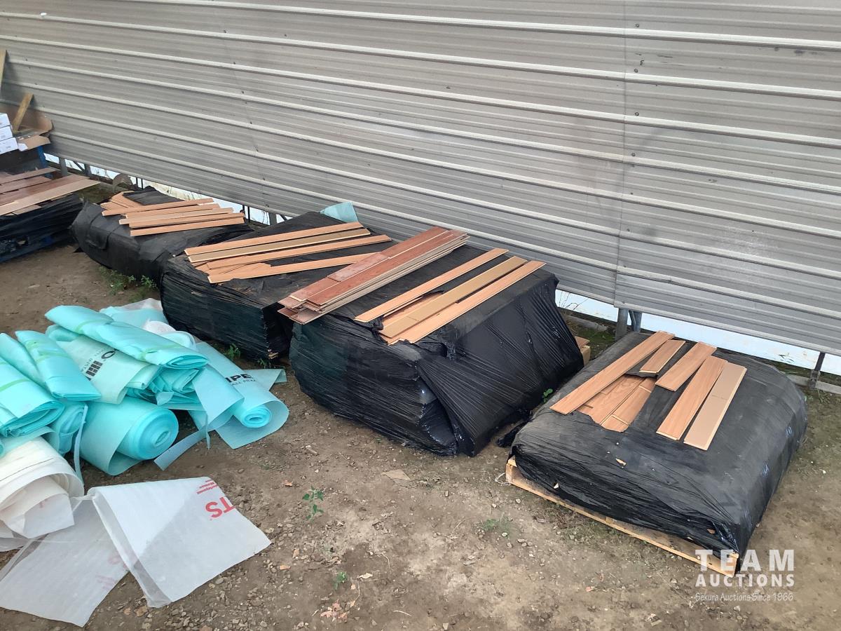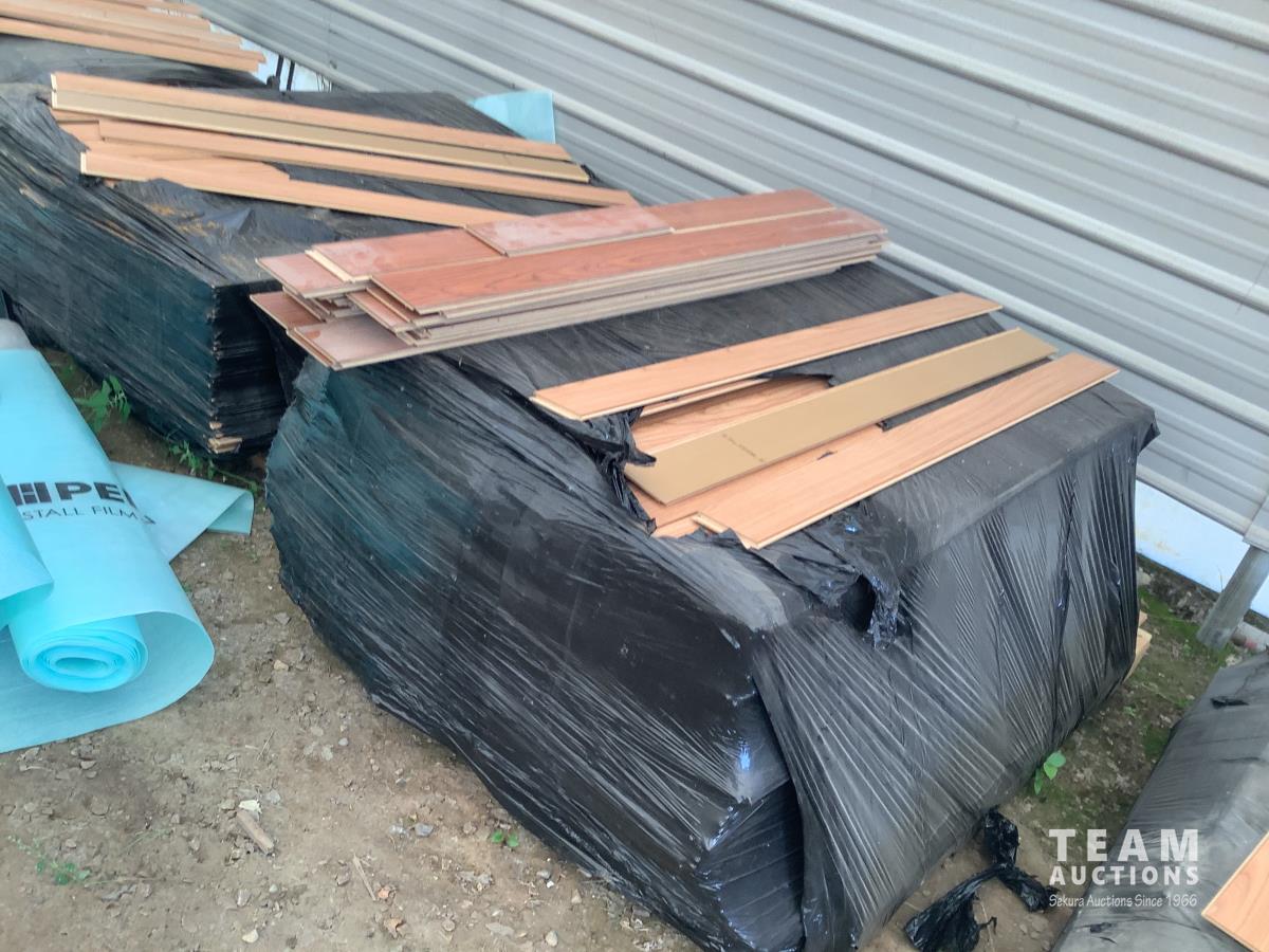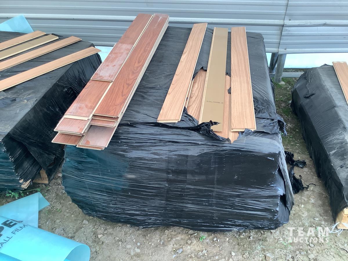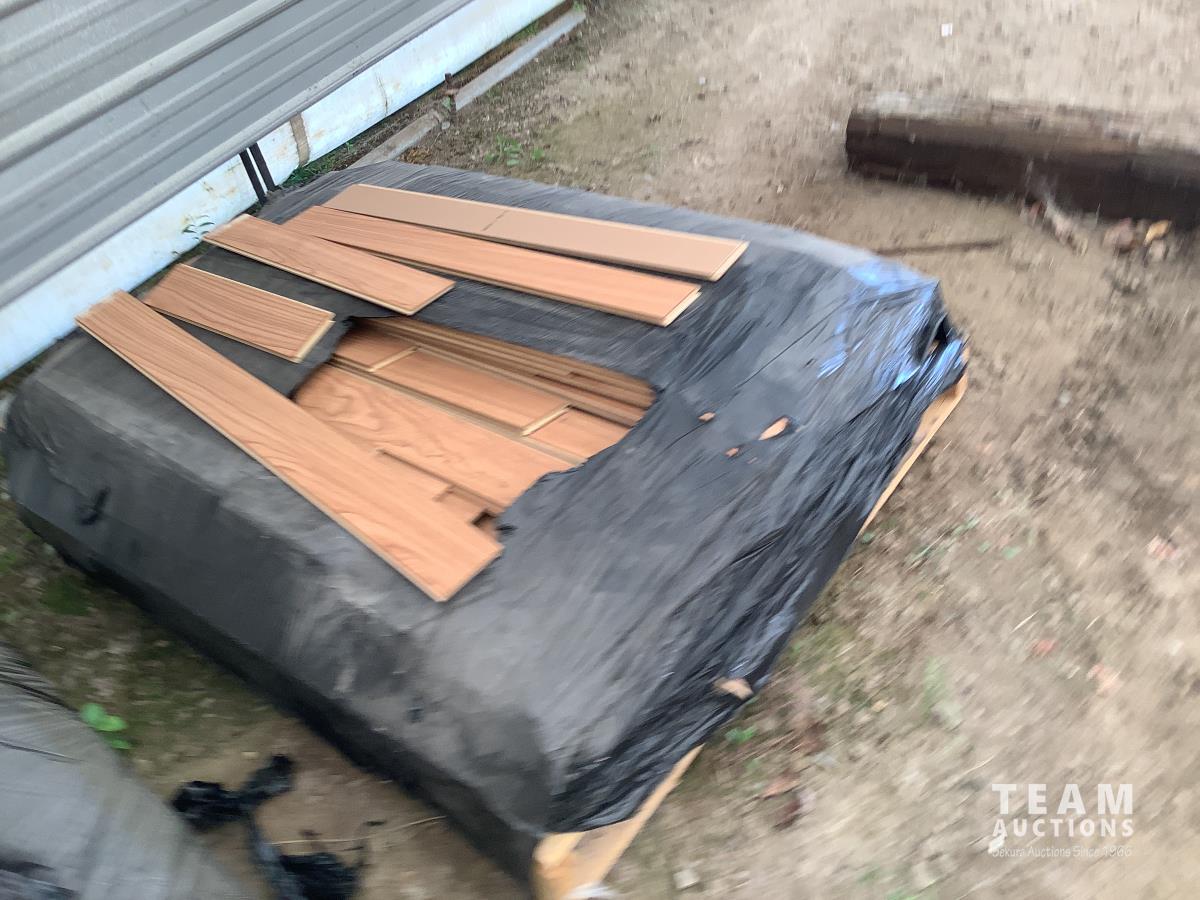 All under lay, (4) pallets some slightly used, (1) pallet of used flooring, all new trim
