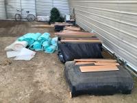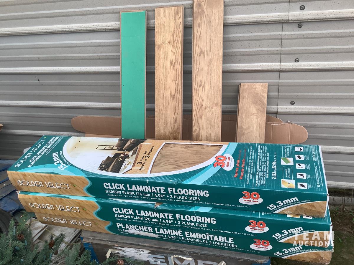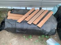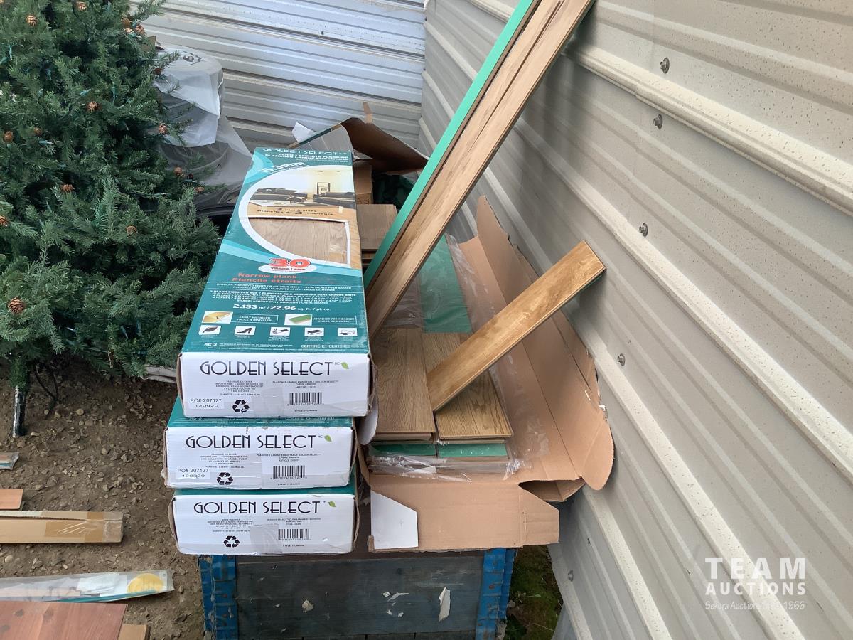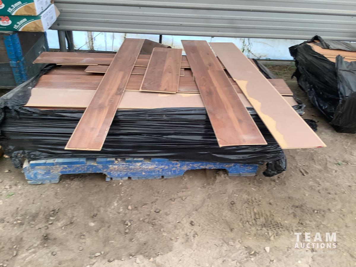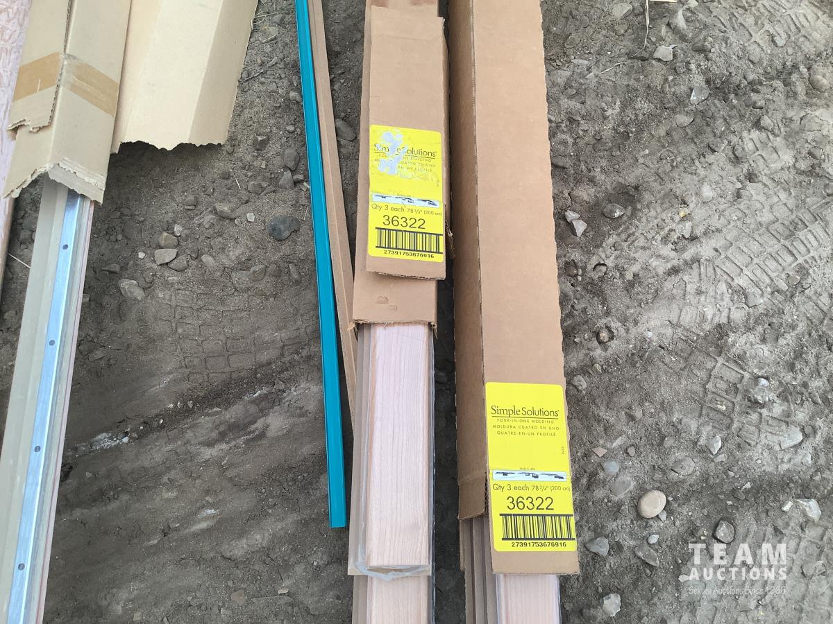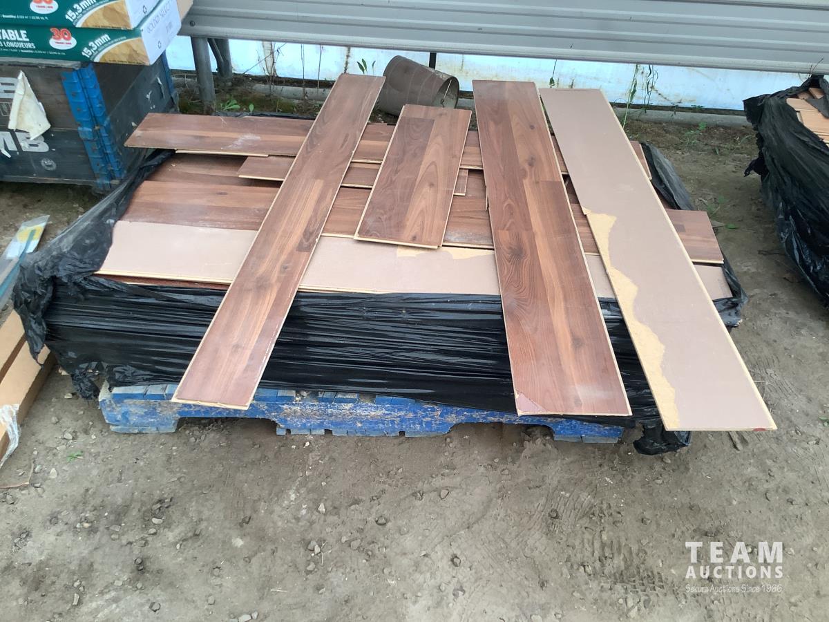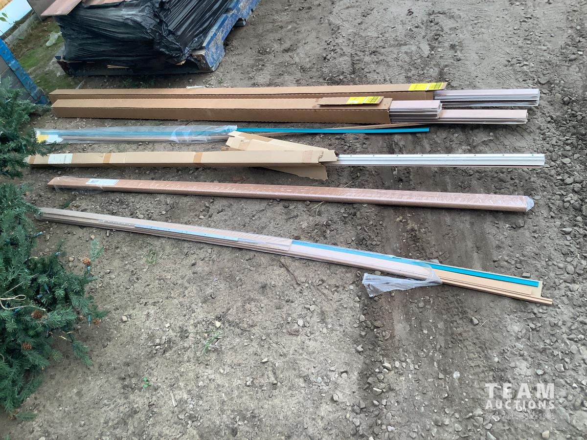 All under lay, (4) pallets some slightly used, (1) pallet of used flooring, all new trim
