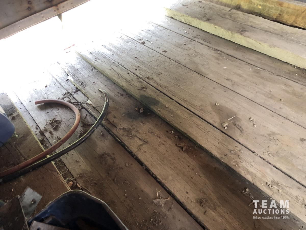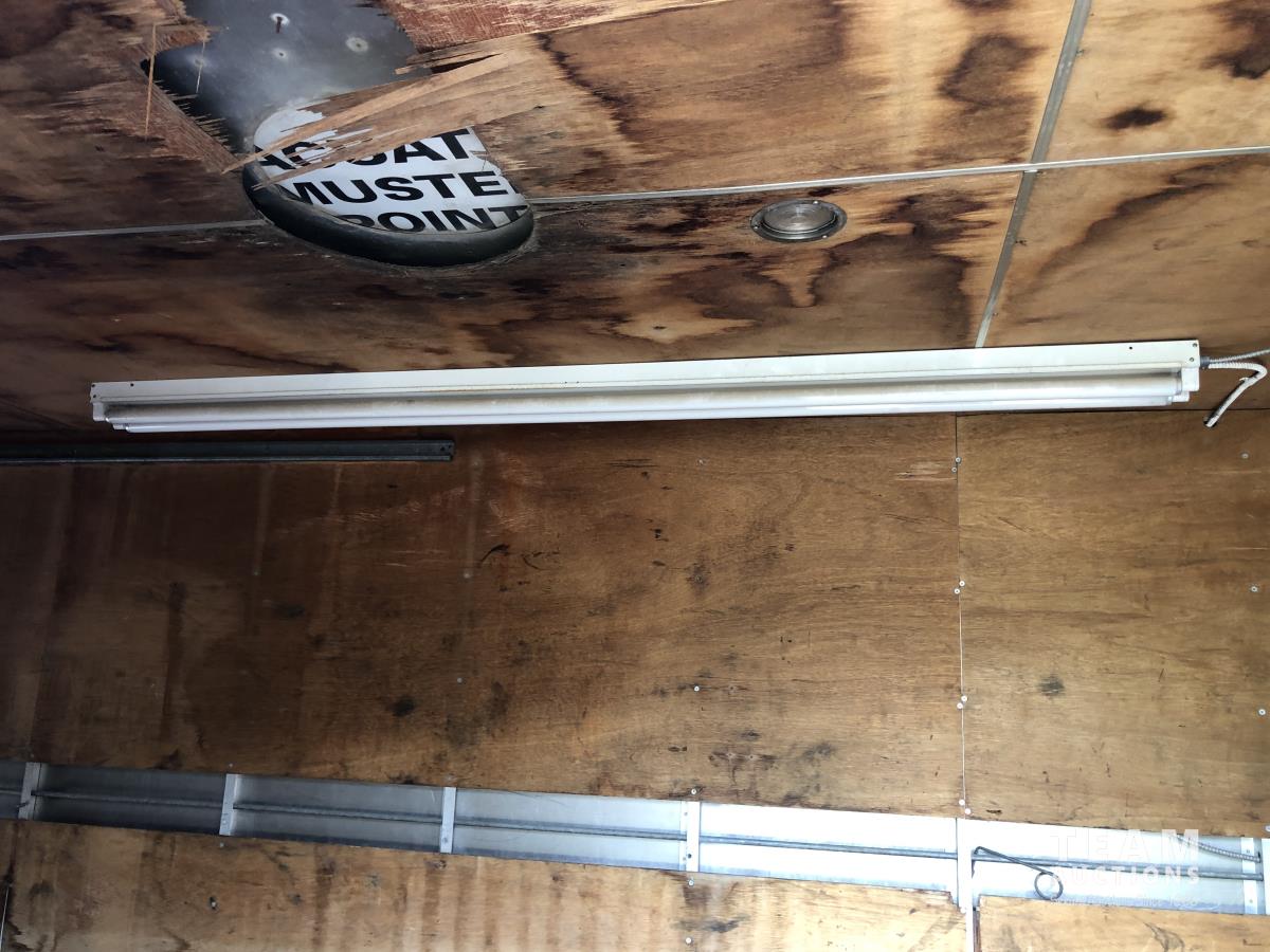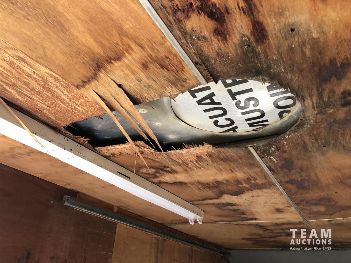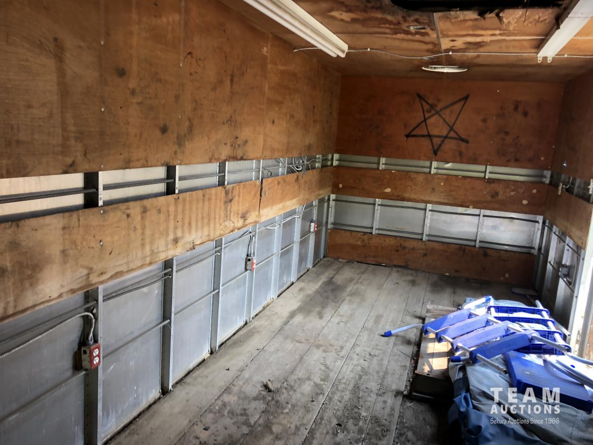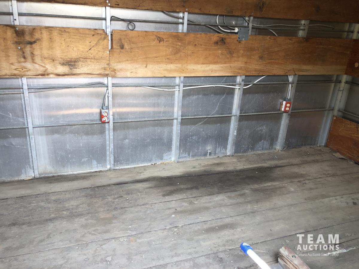 Rear rolling door, 8 ft w 8 ft 6 inch h, wooden floor, power wall sockets and contents