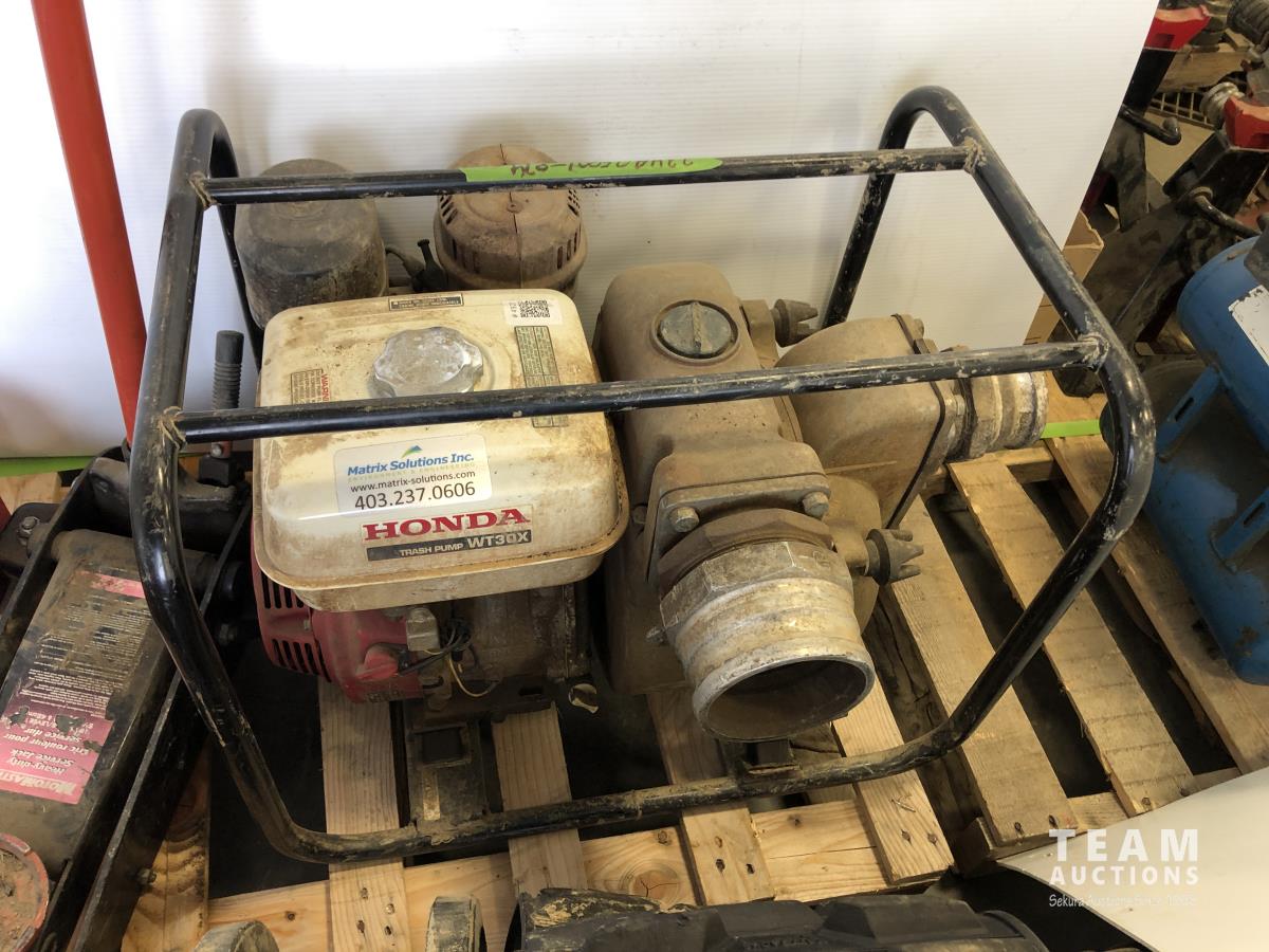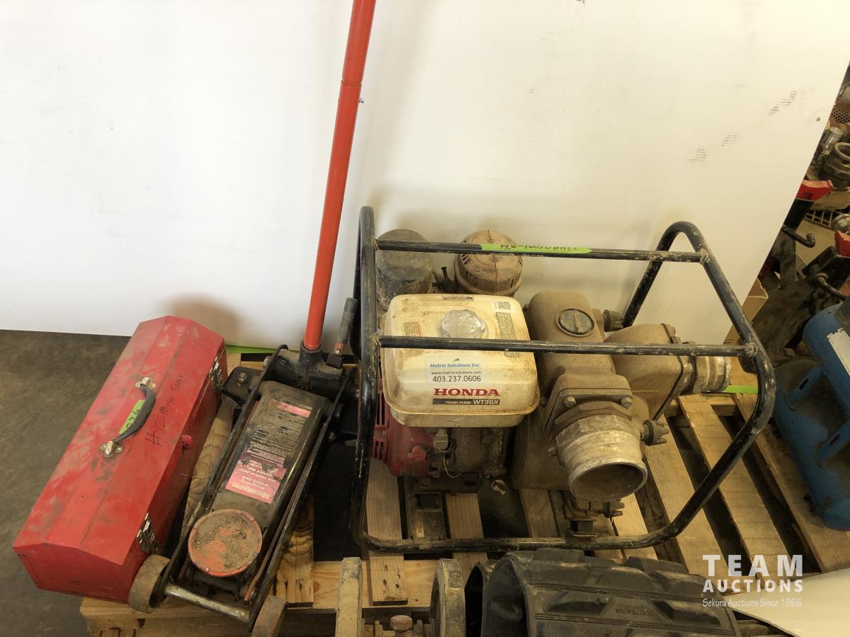 1052 3 Inch Honda WT30X Trash Pump, Motomaster 5.5 Ton Floor Jack and Tool Box with Contents