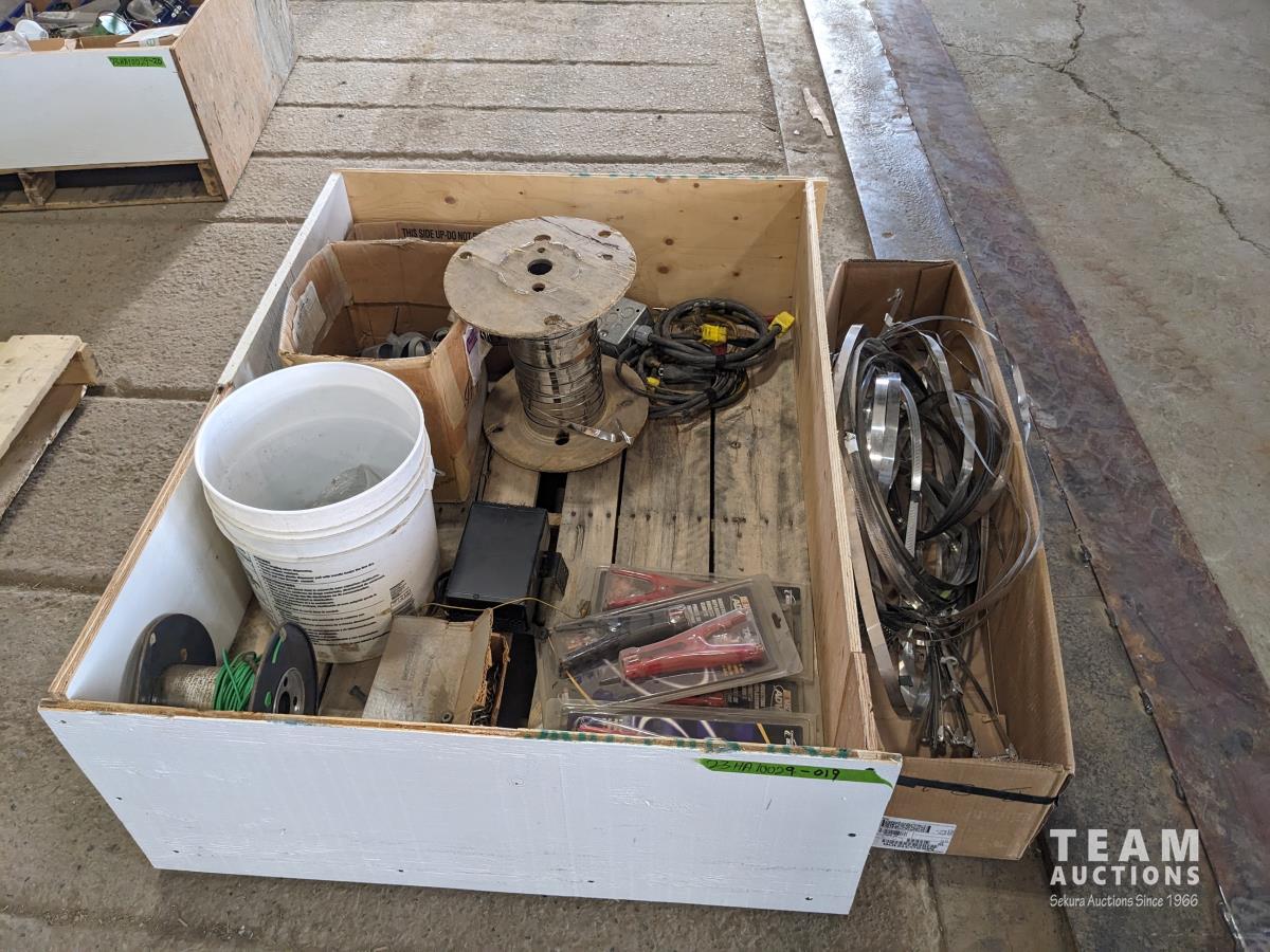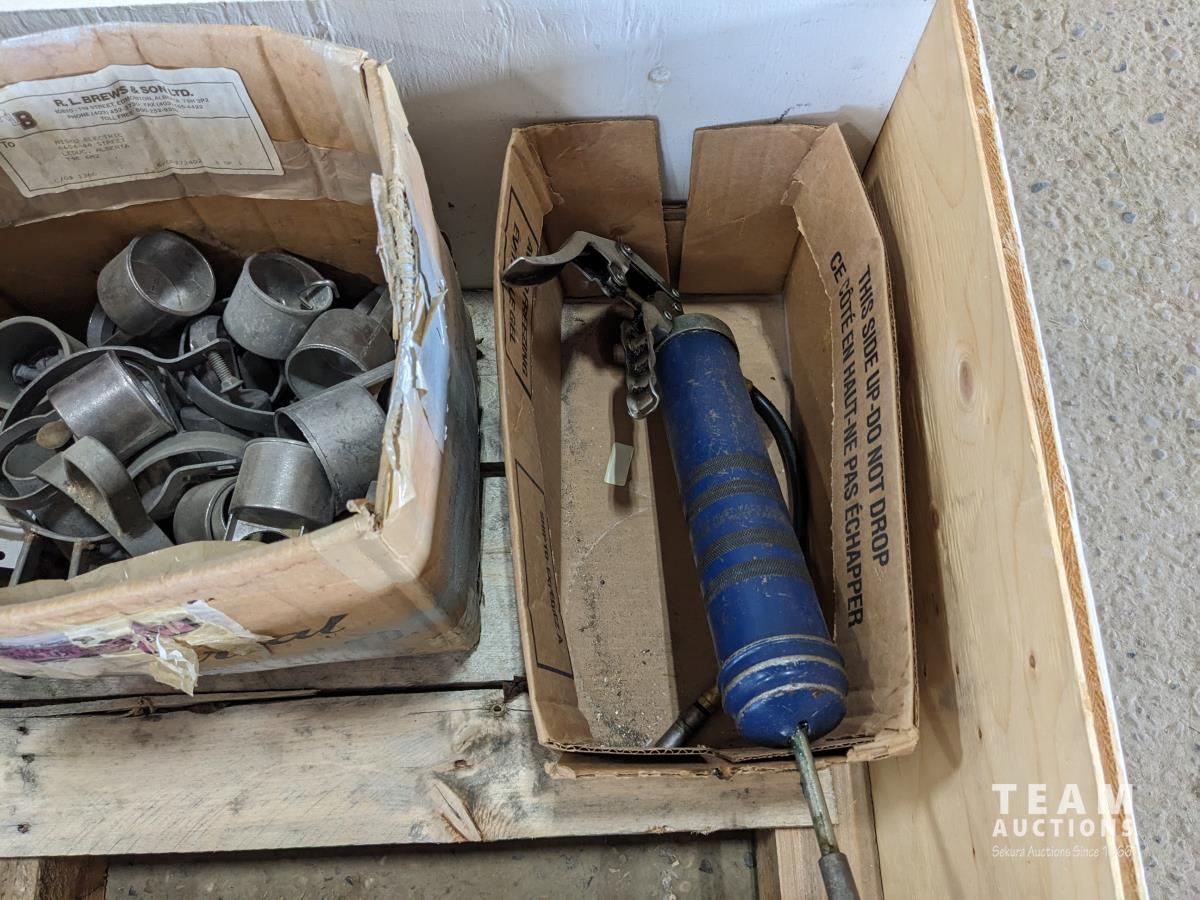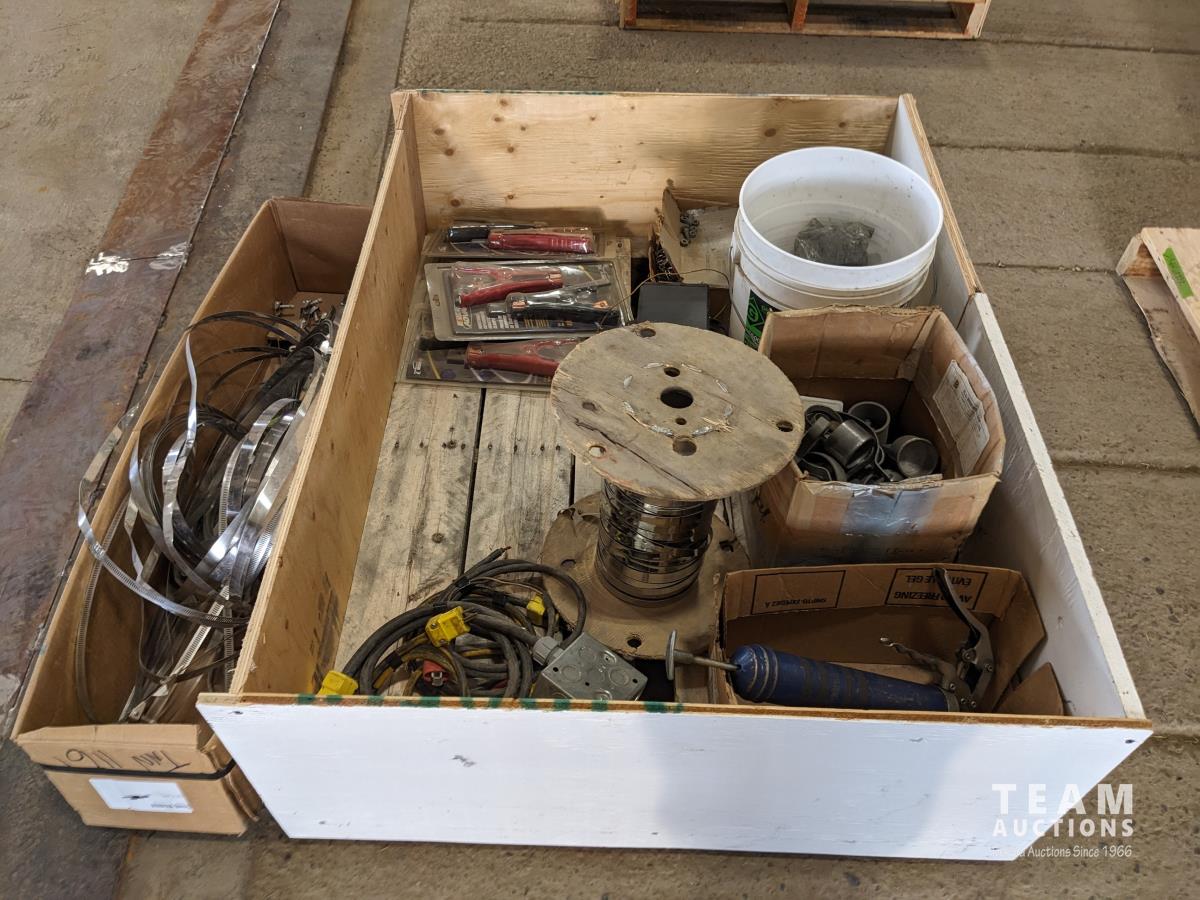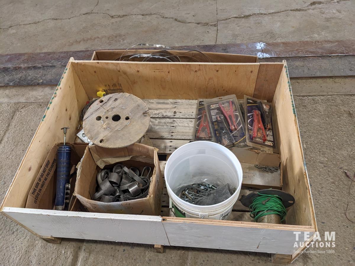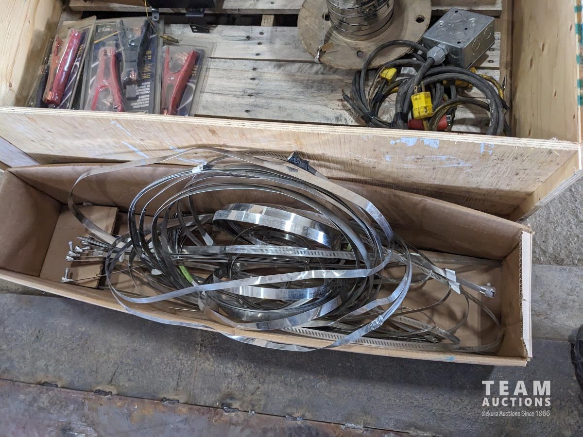 1417 (4) Sets of Booster Cable Clamps, Banding Material, Grease Gun and Electrical Hardware