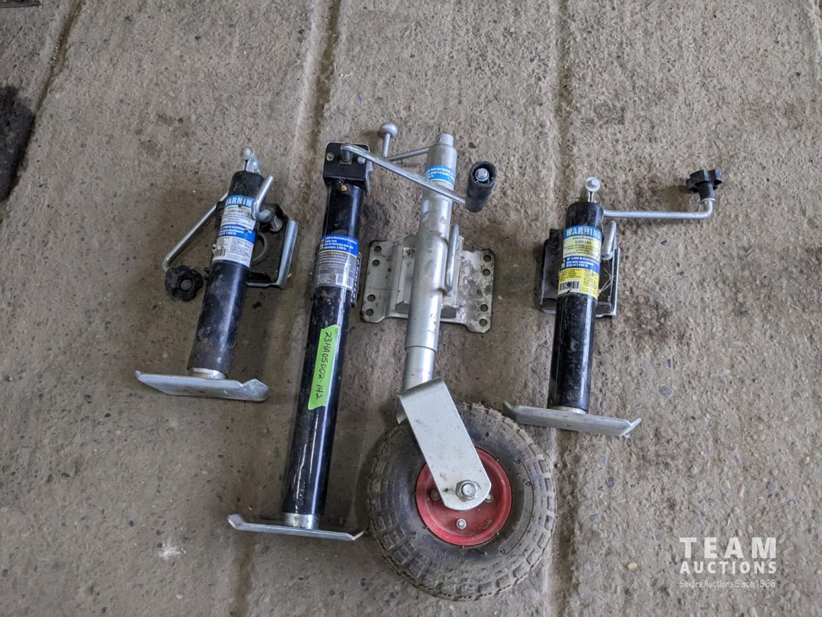 (2) 2,000 lb implement jacks, (1) 5,000 lb trailer jack and (1) auto bolt-on swivel trailer jack