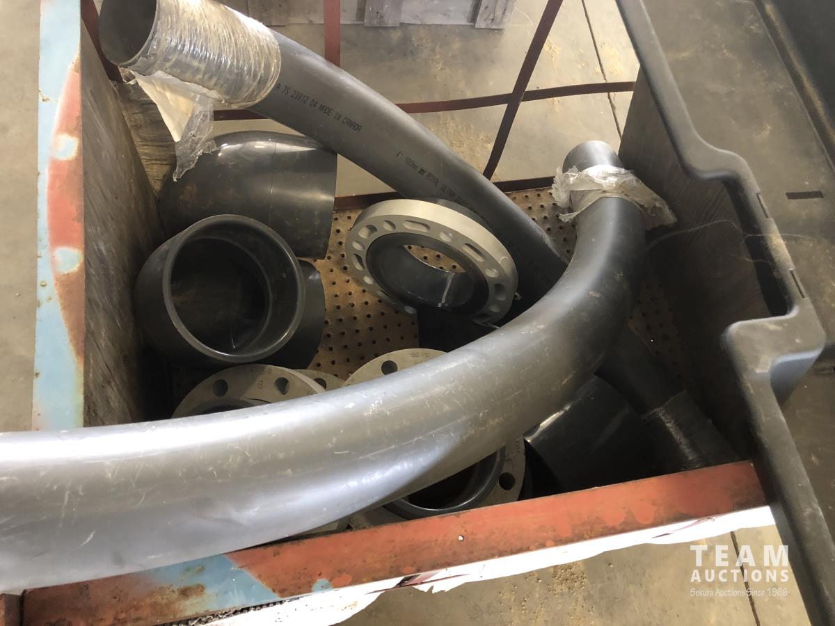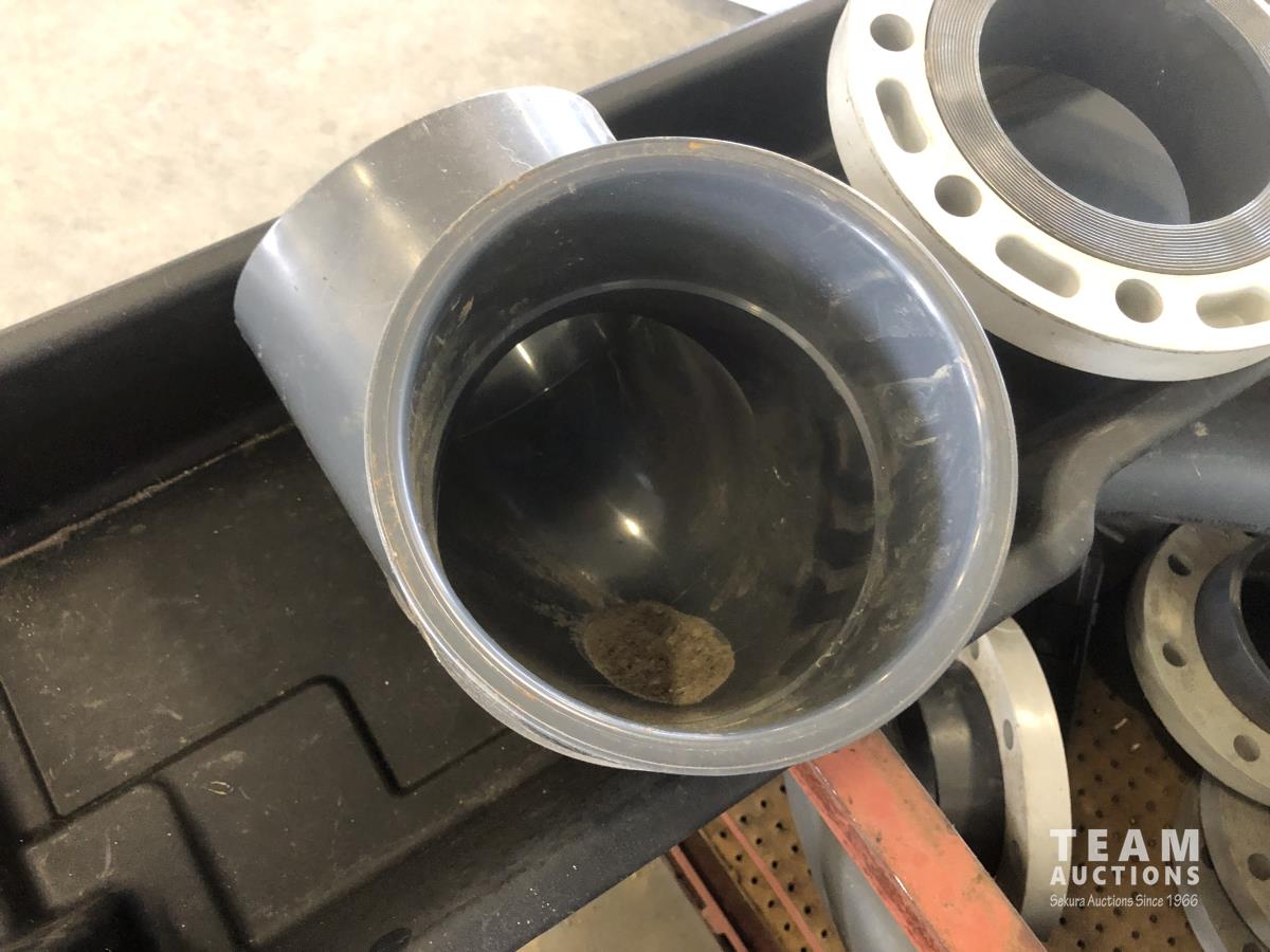 2534 (5) 6 Inch PVC Flanged Couplers, (2) PVC Elbows and (2) 4 Inch PVC Bends