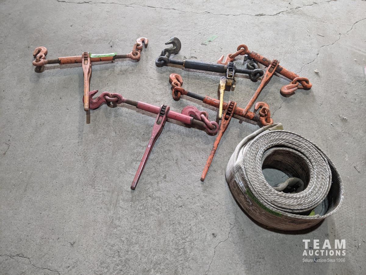 1160 (5) Chain Boomers and 6 Inch X 28 Ft Web Sling