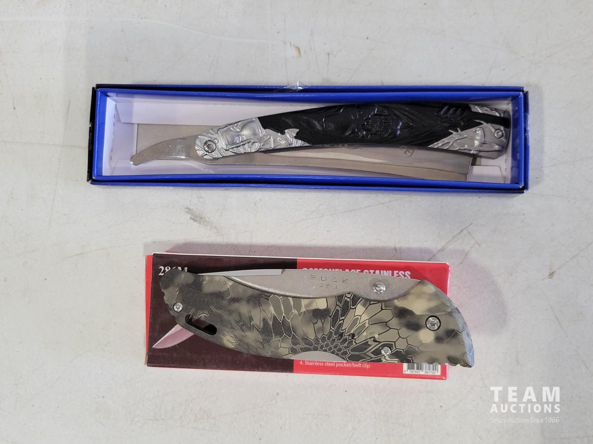 1892 Camo Stainless Folding Pocket Knive and Darkside Blades Fantasy Collections Knife (Unused)