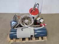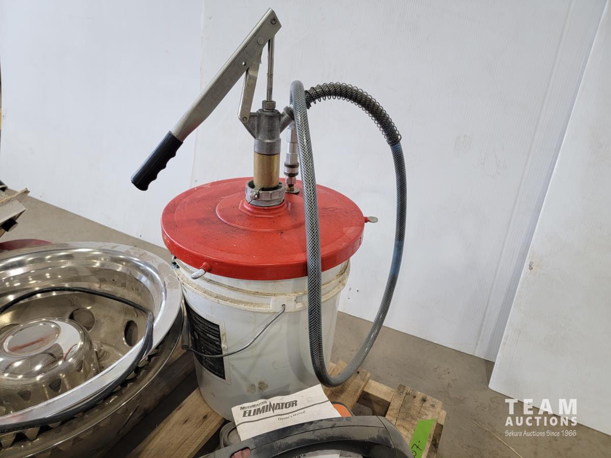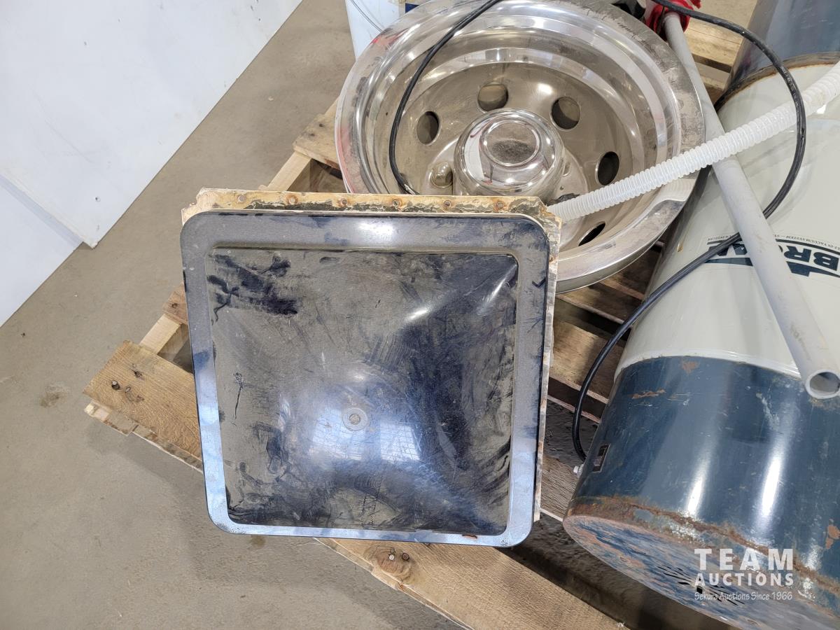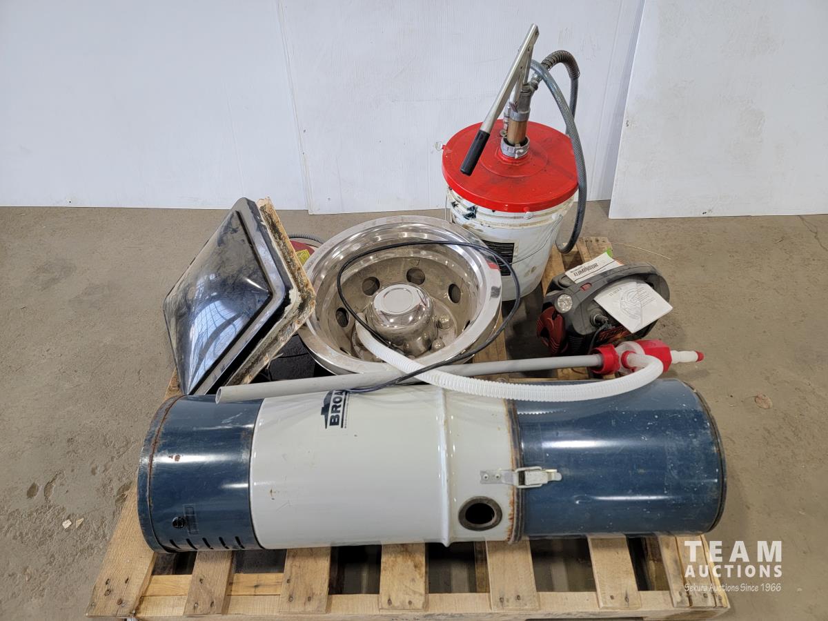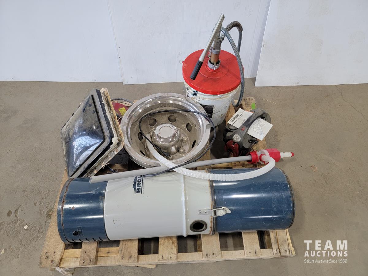 1351 Central Vac, Vent, Tank Deicer, (2) Dually Hub Caps, Motomaster Eliminator and Pail of Grease
