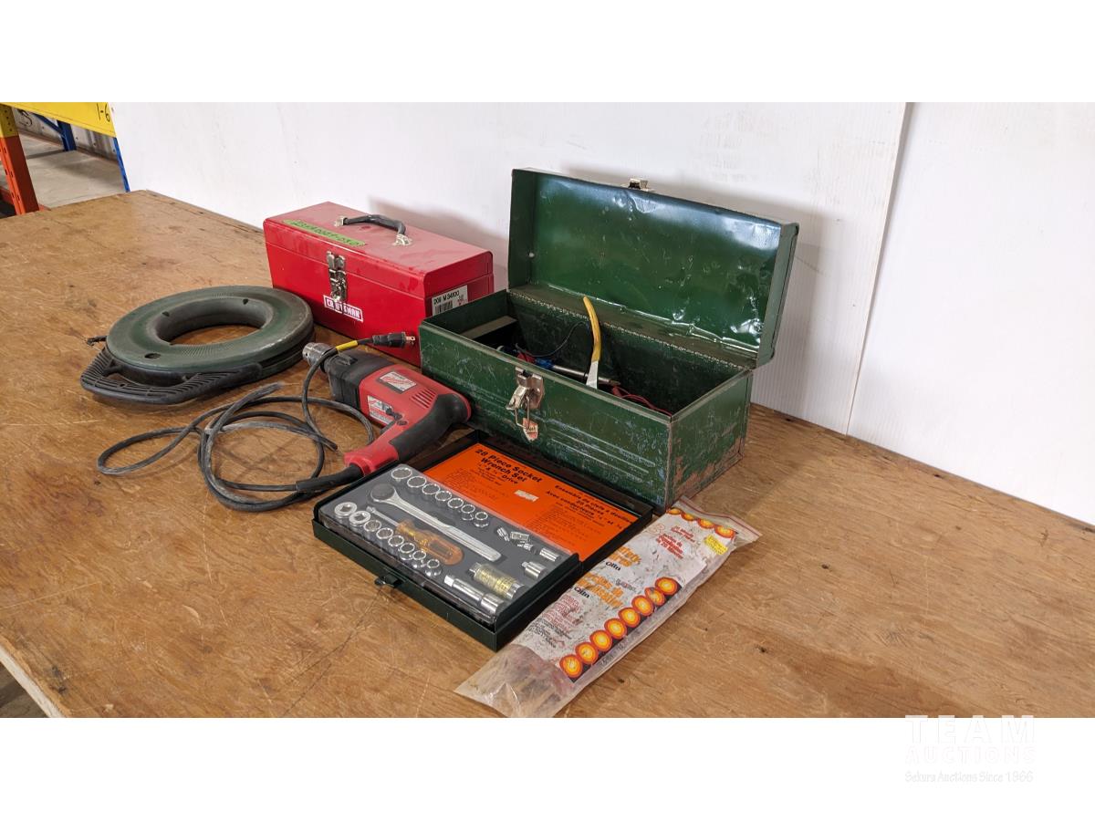 1620 Corded Drill, Tool Set, Fish Tape Puller, Flares, Misc Tools