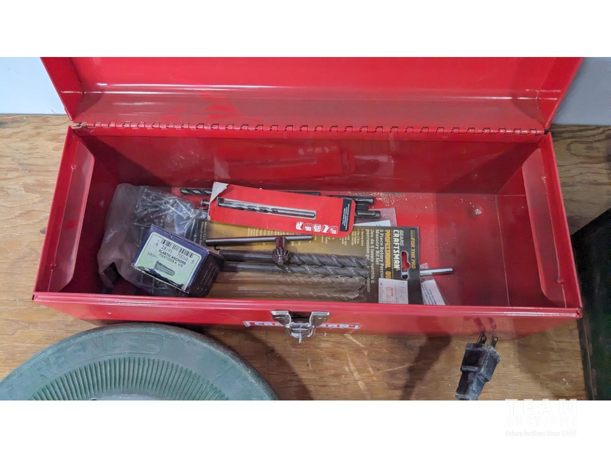 1471 Stanley Tool Box, Drill, Timing Light and Small Storage Containers