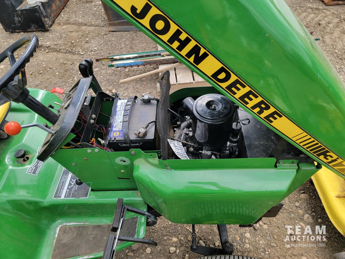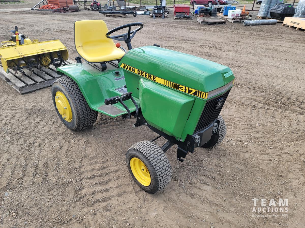 2112 1979 John Deere 317 Garden Tractor with Mower and Tiller