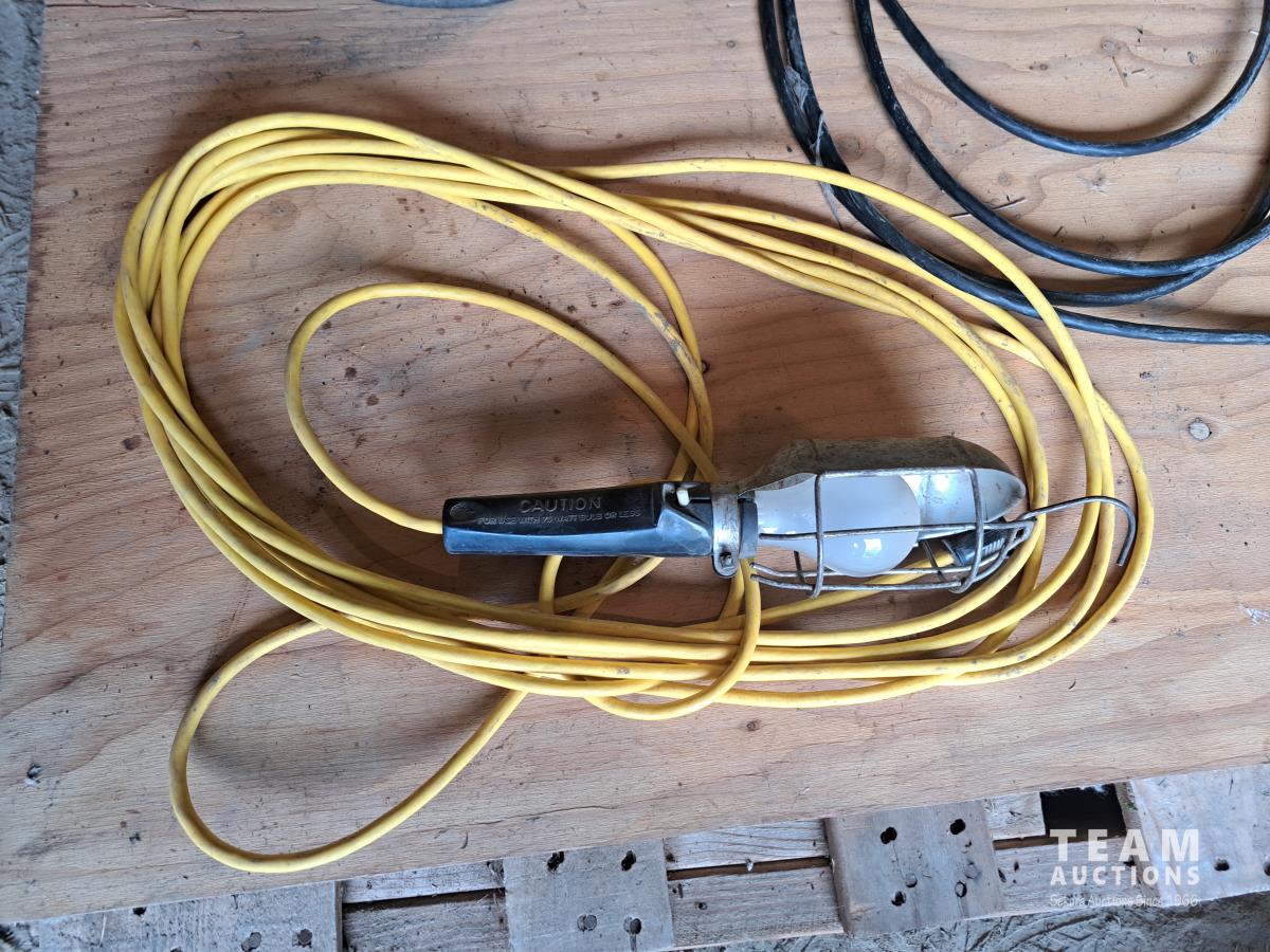 With belt pully, 2 power cords, 1 trouble light.