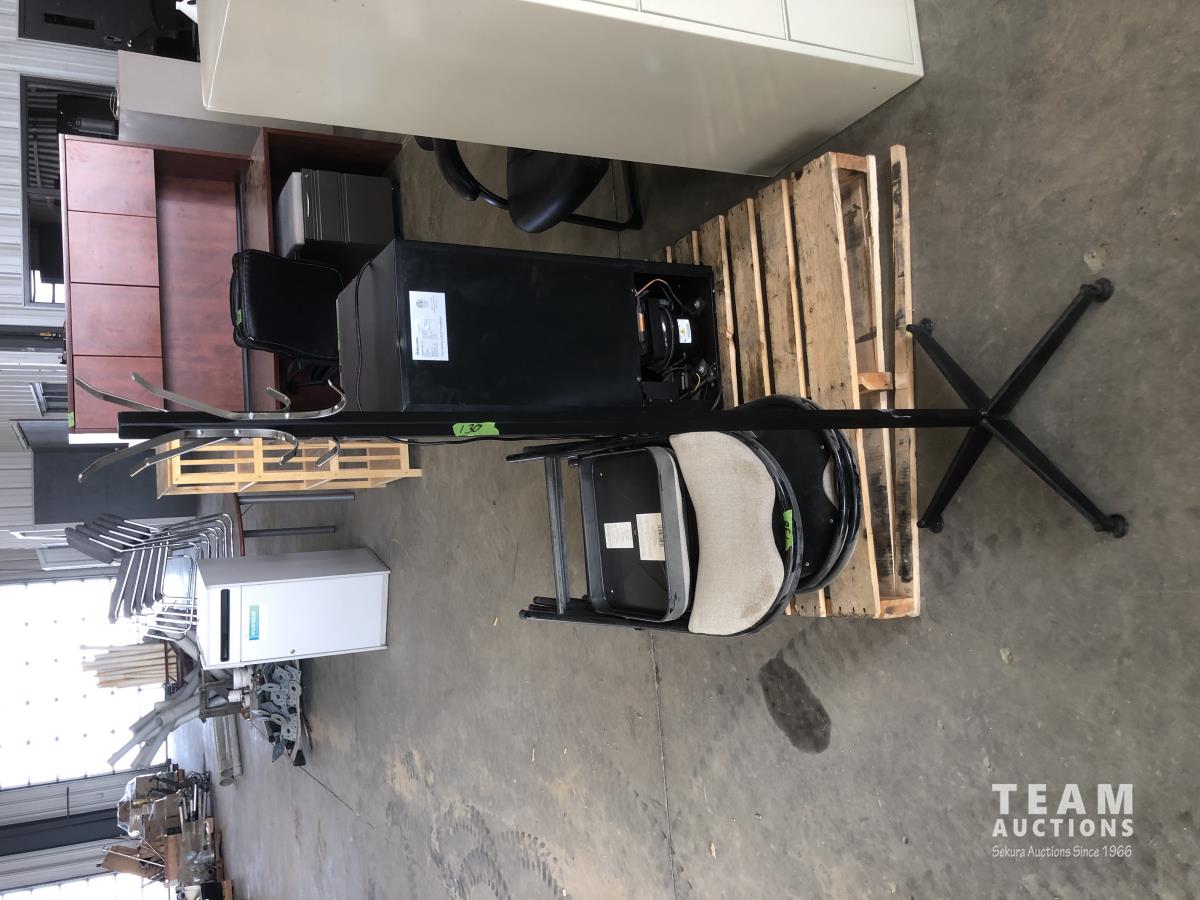 2554 Kalamera Wine Cooler Refrigerator, Coat Tree and (6) Folding Chairs