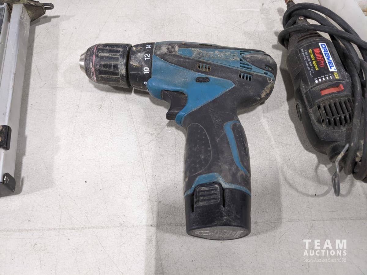 1558 Makita Belt Sander, Campbell Hausfeld Brad Nailer, Dremel with Bits and Makita 10.8v Drill