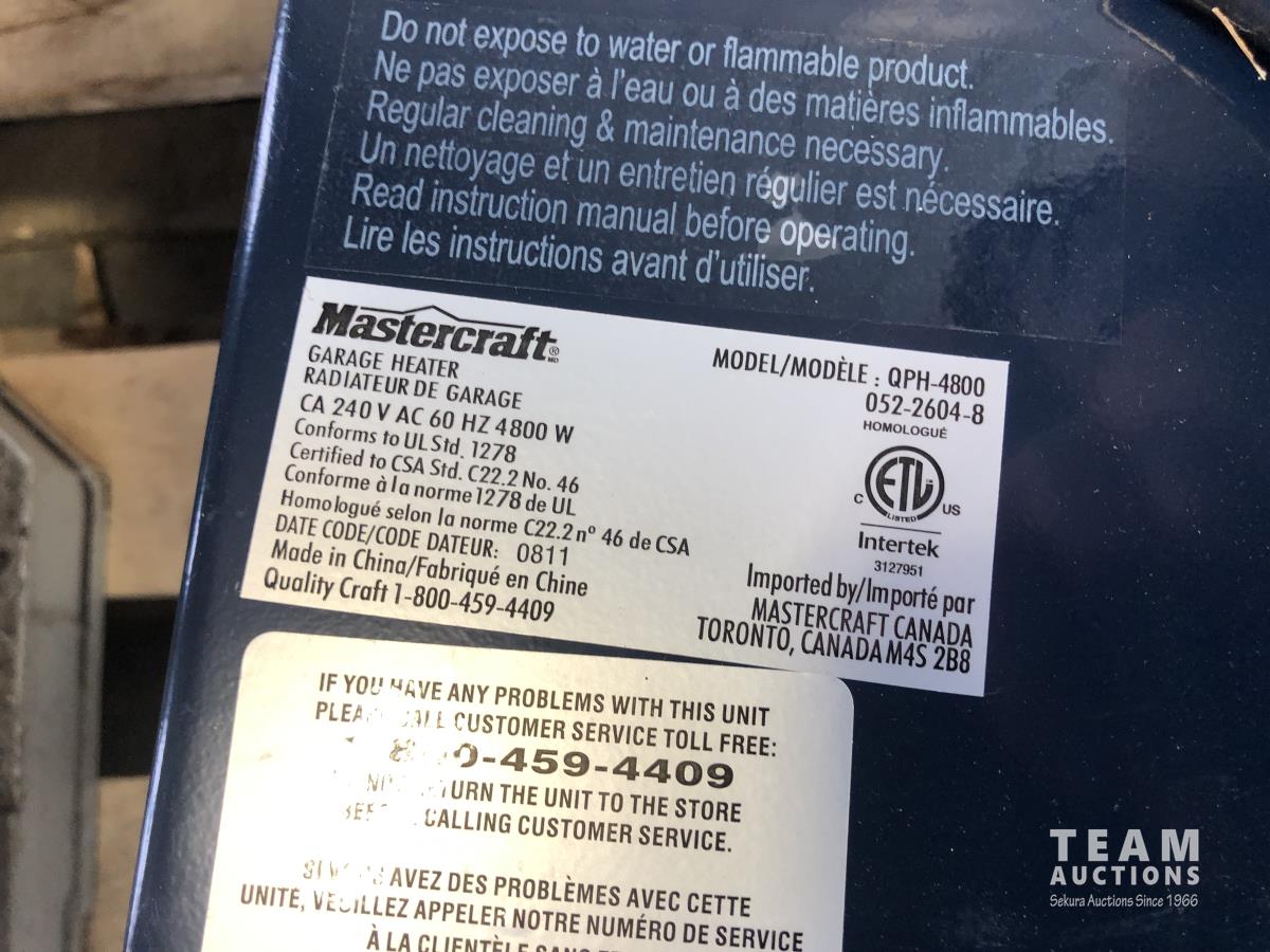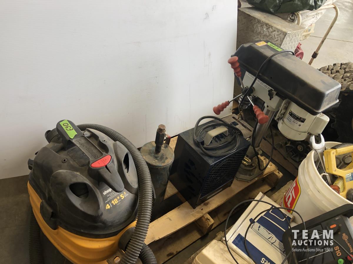 1062 Powersonic 8 Inch Drill Press, 240V Mastercraft Space Heater and 4 Gallon Shop Vac