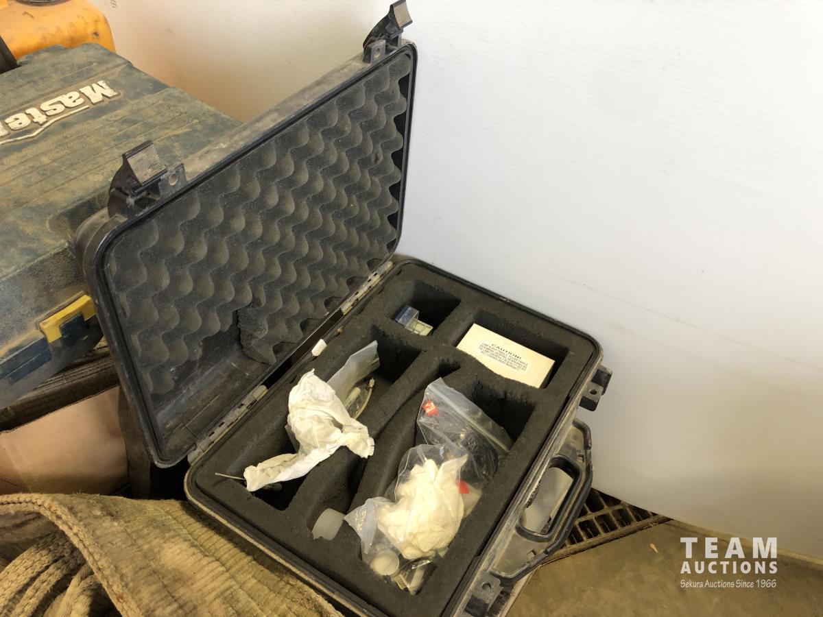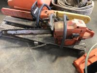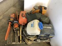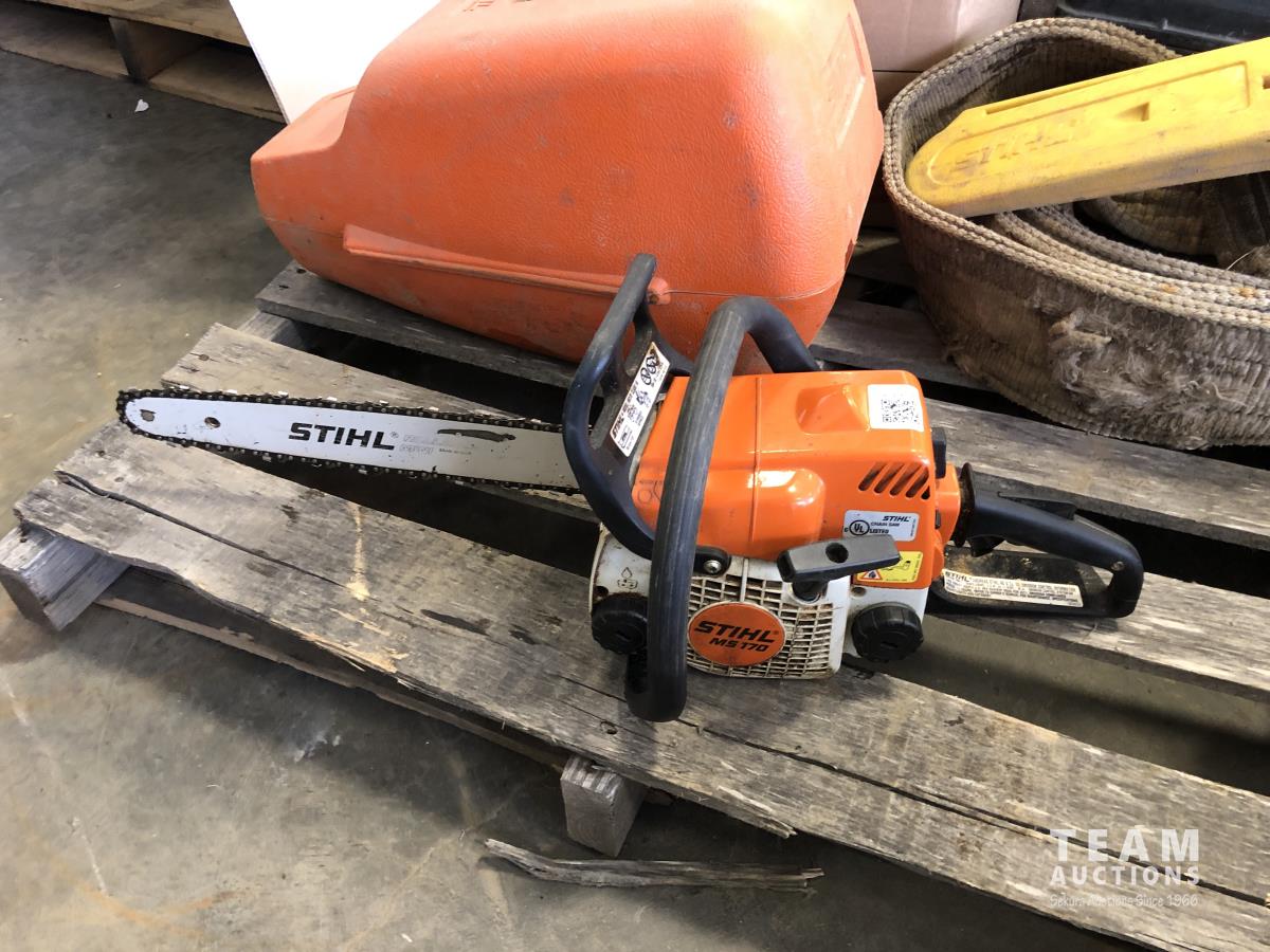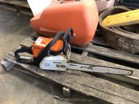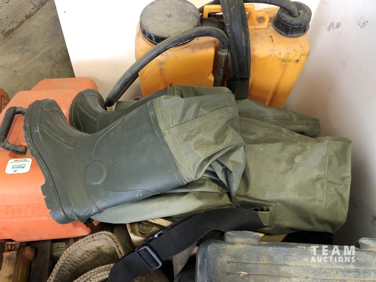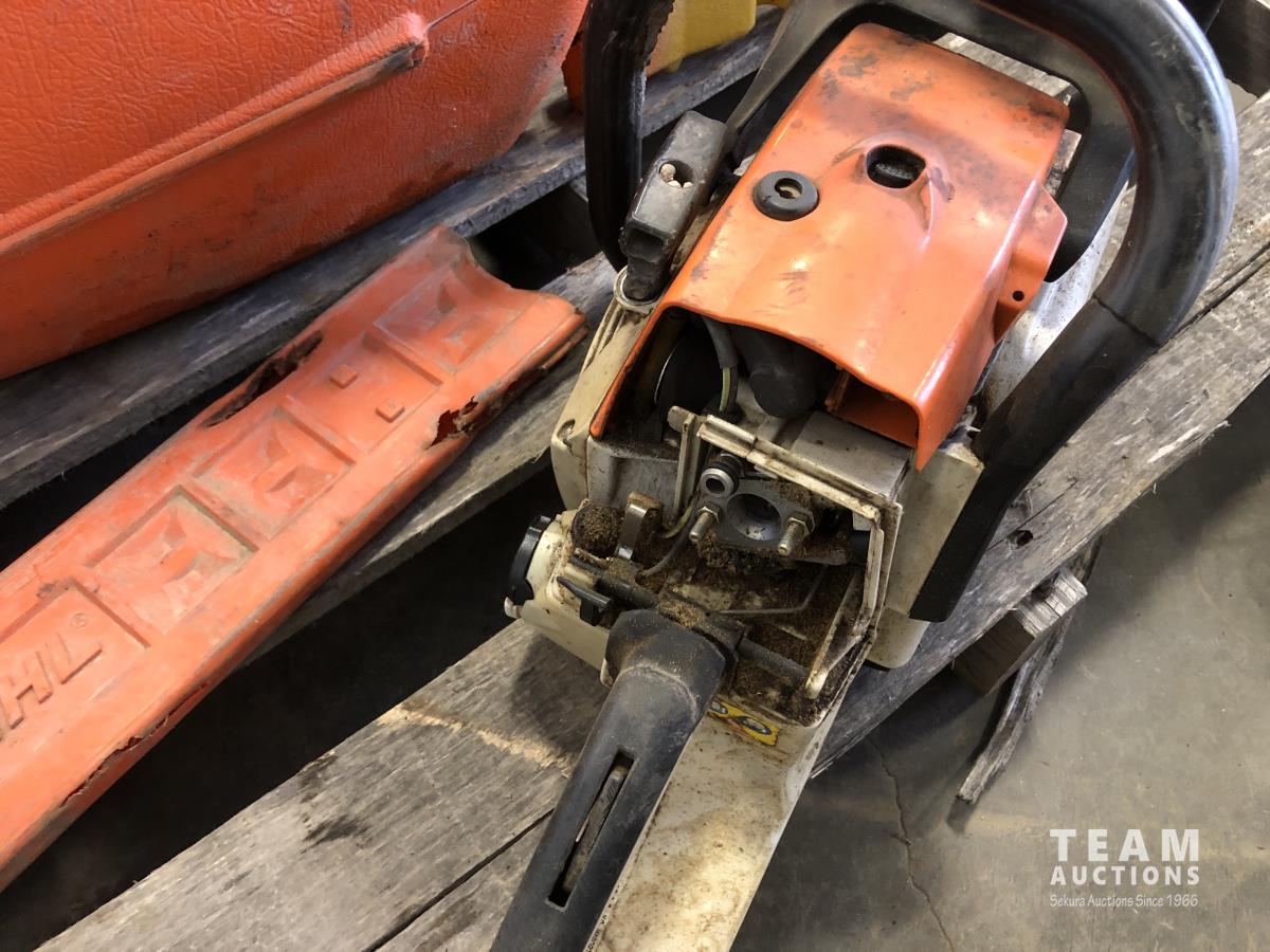 Back pack water pump, slings, straps, backpack sprayer, size 10 hip waders, Husqvarna 272XP chainsaw with 20 inch bar, Stihl MS170 chainsaw with 14 inch bar and case, Stihl MS260 chainsaw with 16 inch bar, drill bit set, pelican case, 1/2 inch drive impact sockets