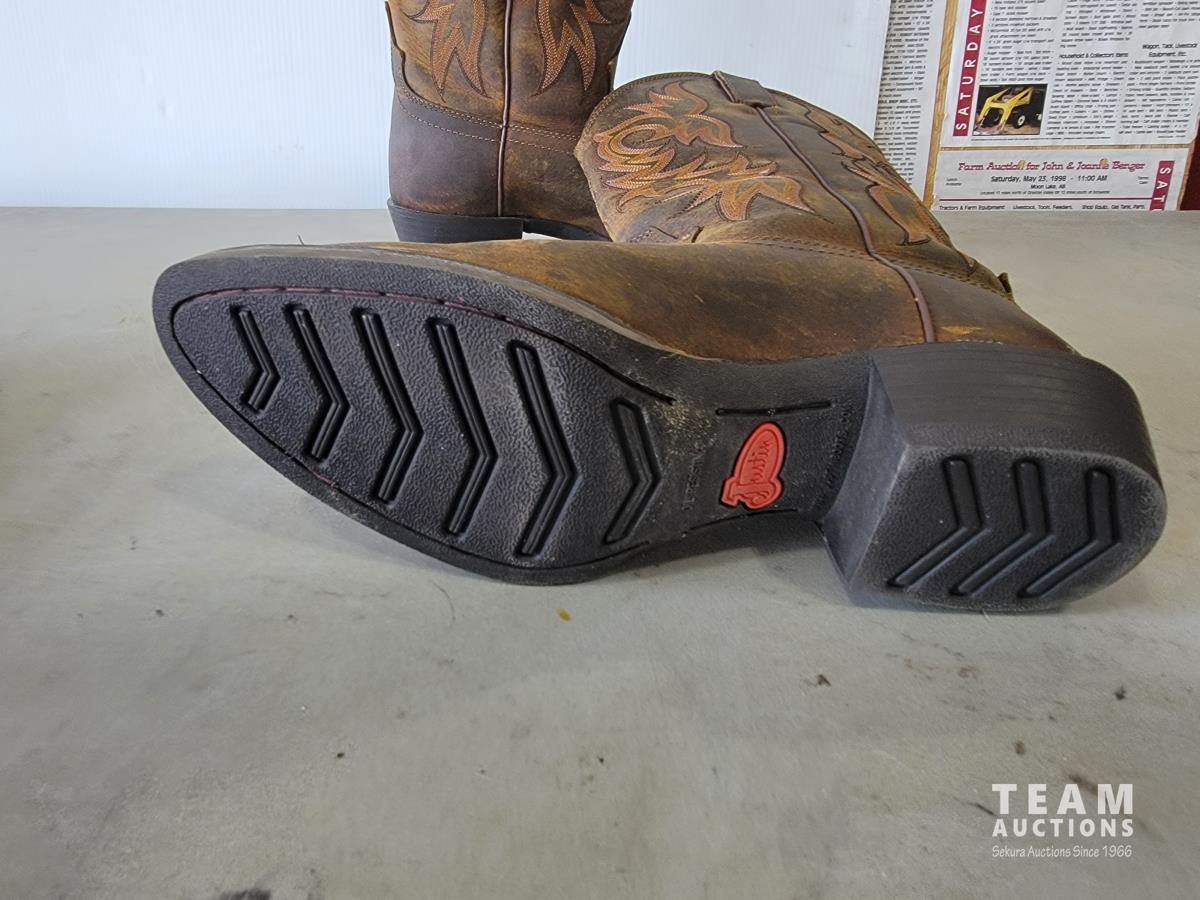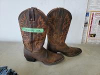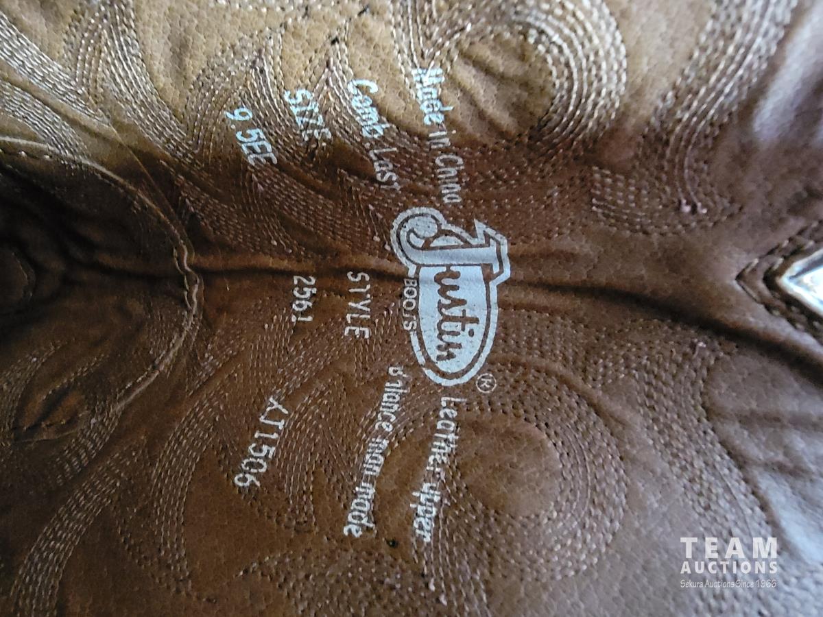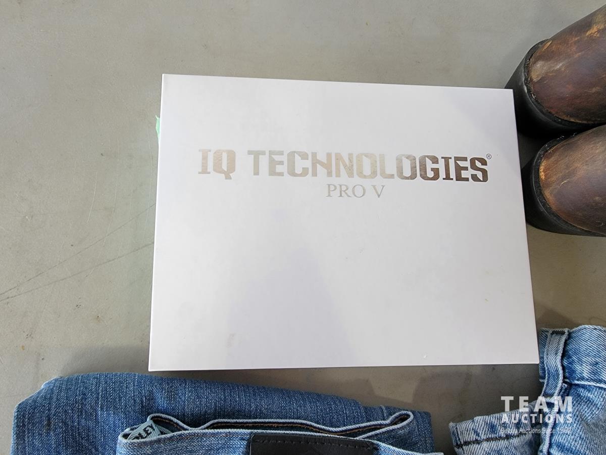 Justin size 9.5EE cowboy boots, IQ technologies muscle stimulator, (3) pairs of Harley Davidson jeans size 34X34
