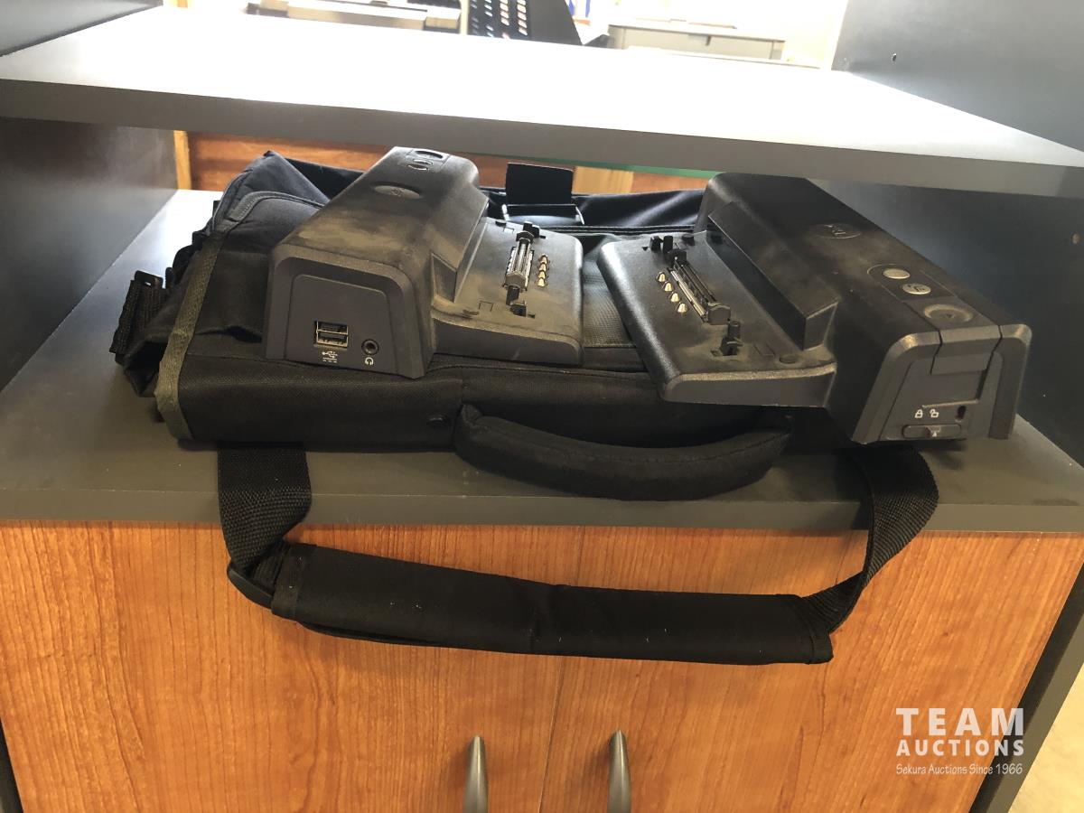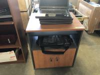 Keyboards, computers, printers, laptops, monitor and related equipment. Cabinet: 23.5 inch l x 19.5 inch d x 29.5 inch h, contents included