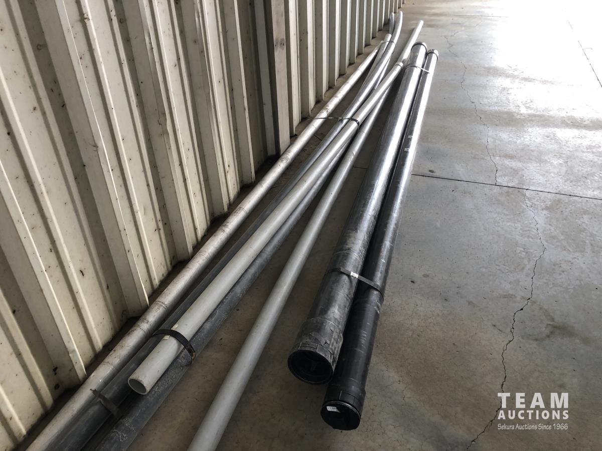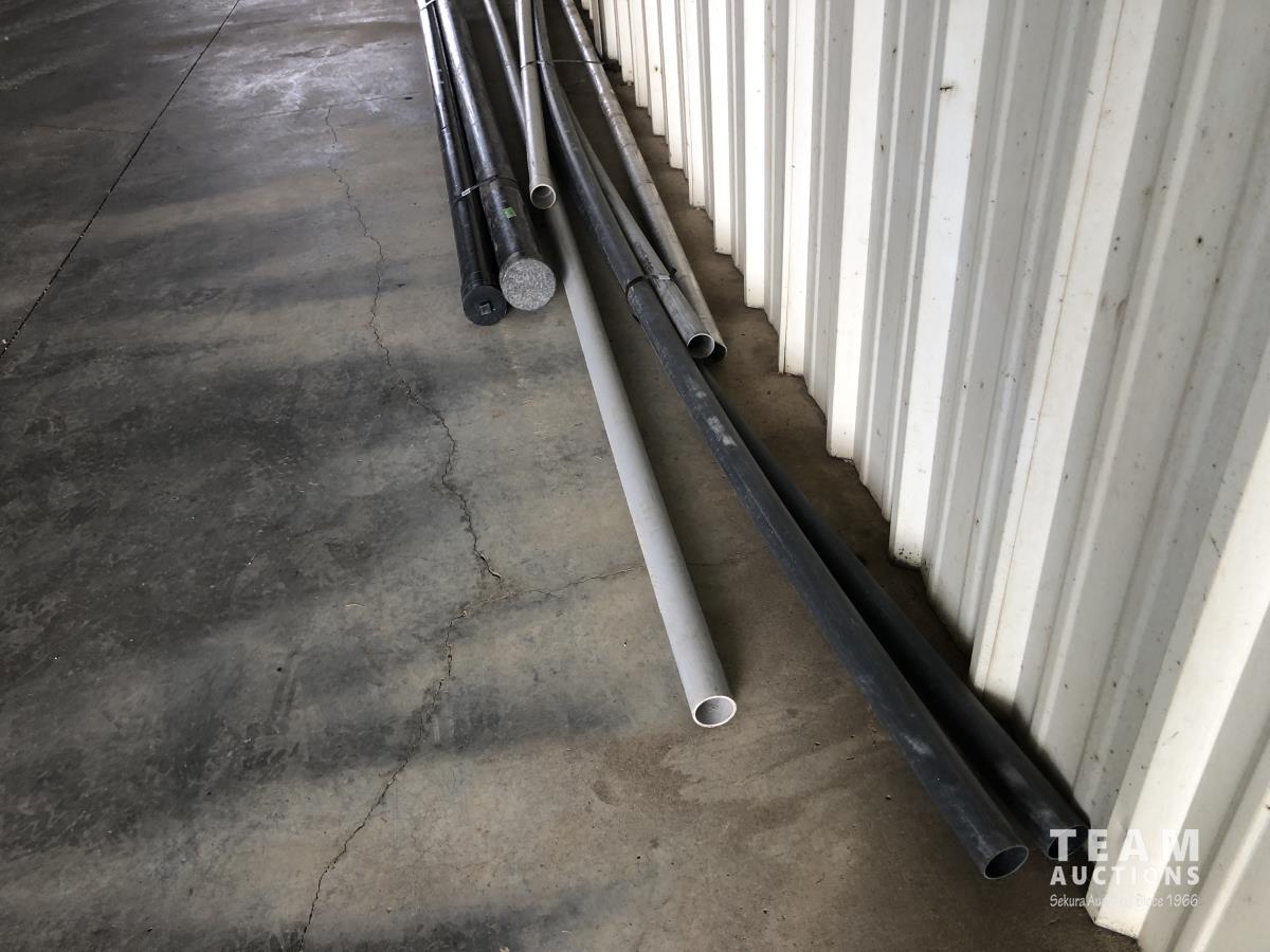 (5) 10 ft - 20 ft lengths of 2 inch conduit, (1) 15 ft length of 2 inch galvanized steel pipe, (1) 11 ft length of 3 inch conduit with end caps, (1) 11 ft length of 4 inch with end caps