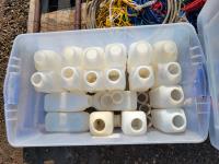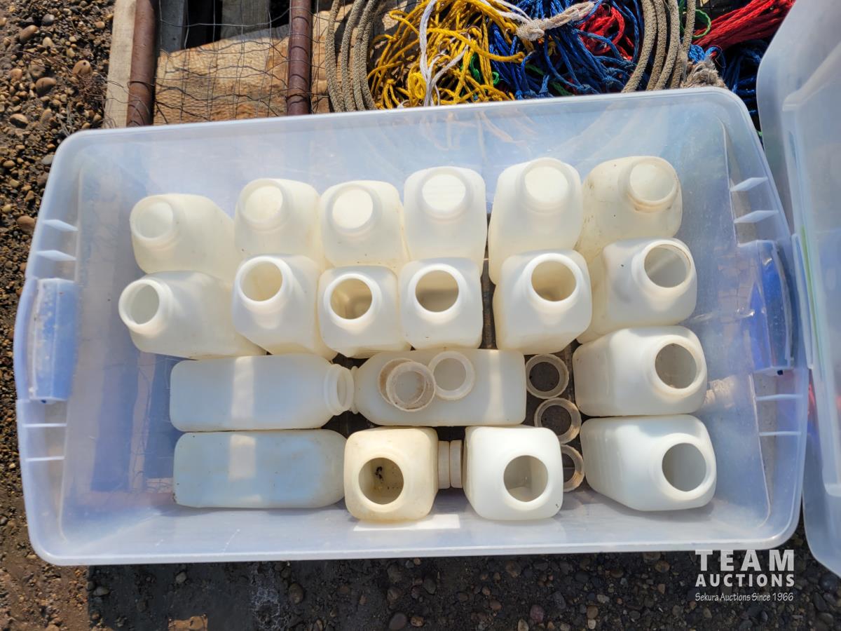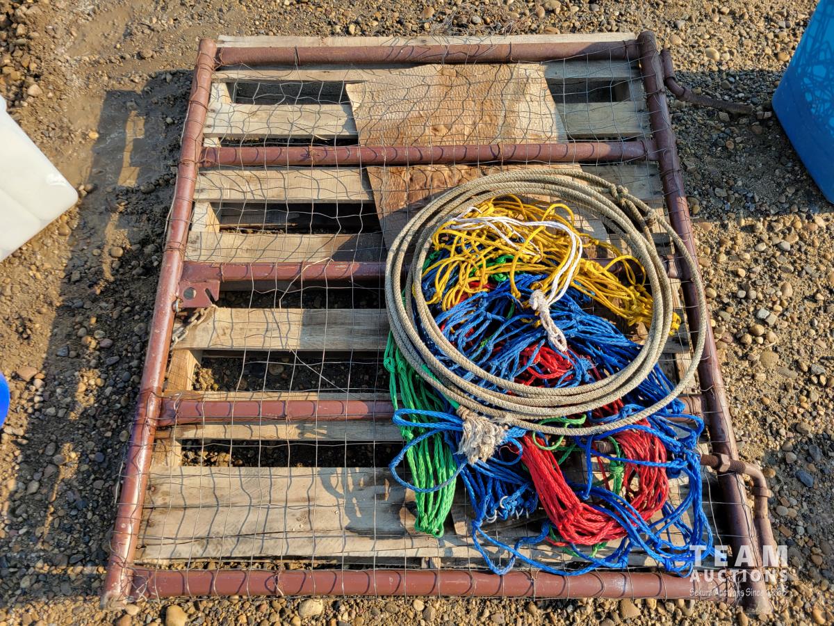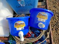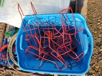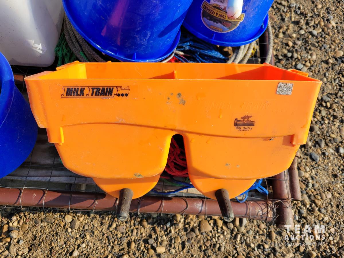 (19) milk bottles, bottle holders, (3) pails with nipples, gate panel, hay nets, lariat