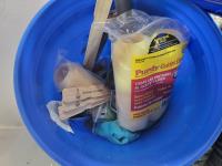(3) 25 ft solid flexible drain pipes, 100 ft 1/2 inch poly tubing, weatherproof GFCI kit, 100 ft 14/2 solid metal clad cable, 200 ft coaxial cable, plumbing connectors, painting supplies