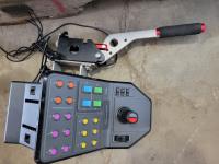 hanging light fixture, gaming simulator controls and hand brake, disc repair kit, holster, Hp printer