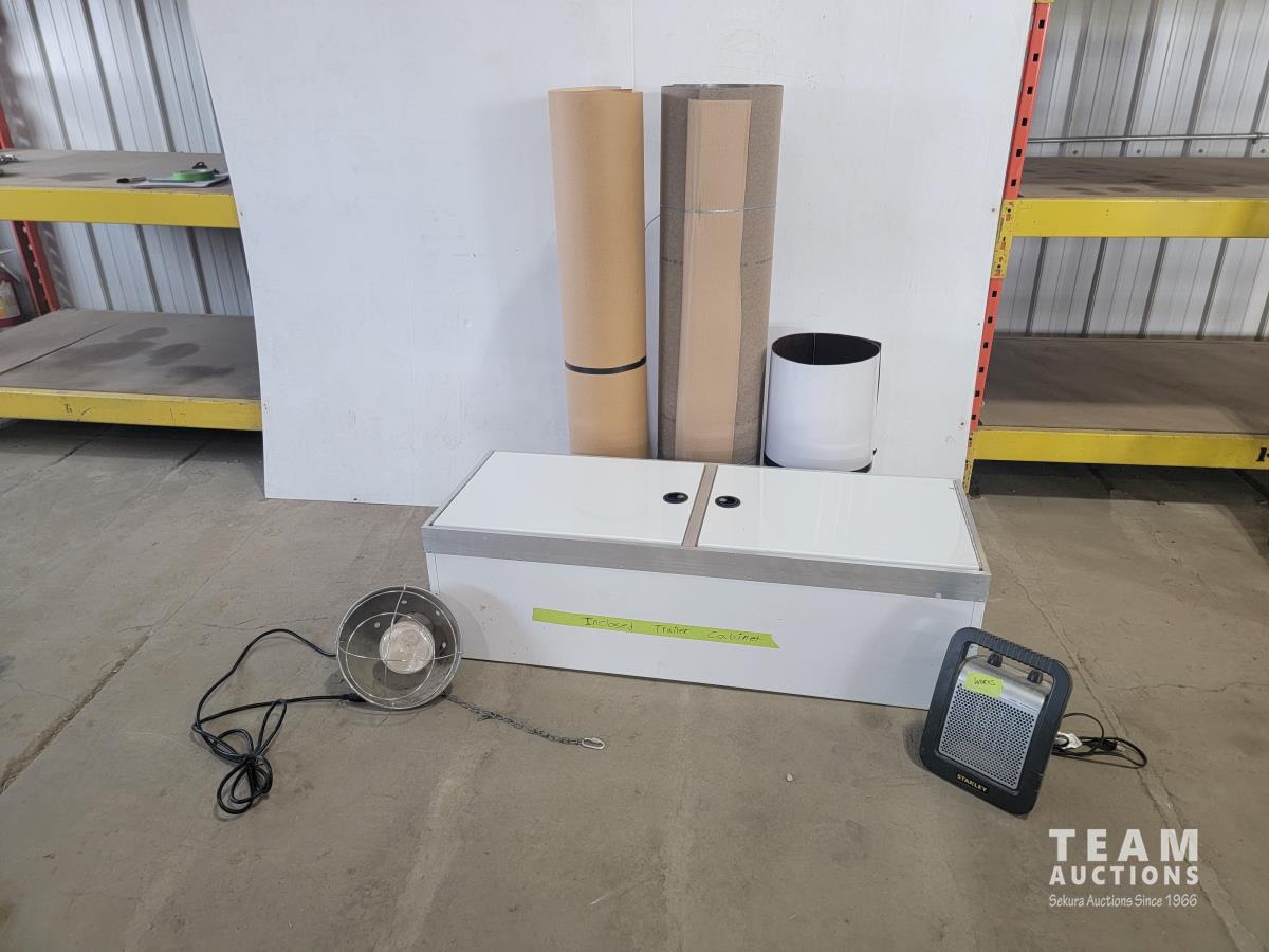 Maple and (2) other designs laminate rolls about 2 ft on each roll, enclosed trailer cabinet, heat lamp and Stanley space heater