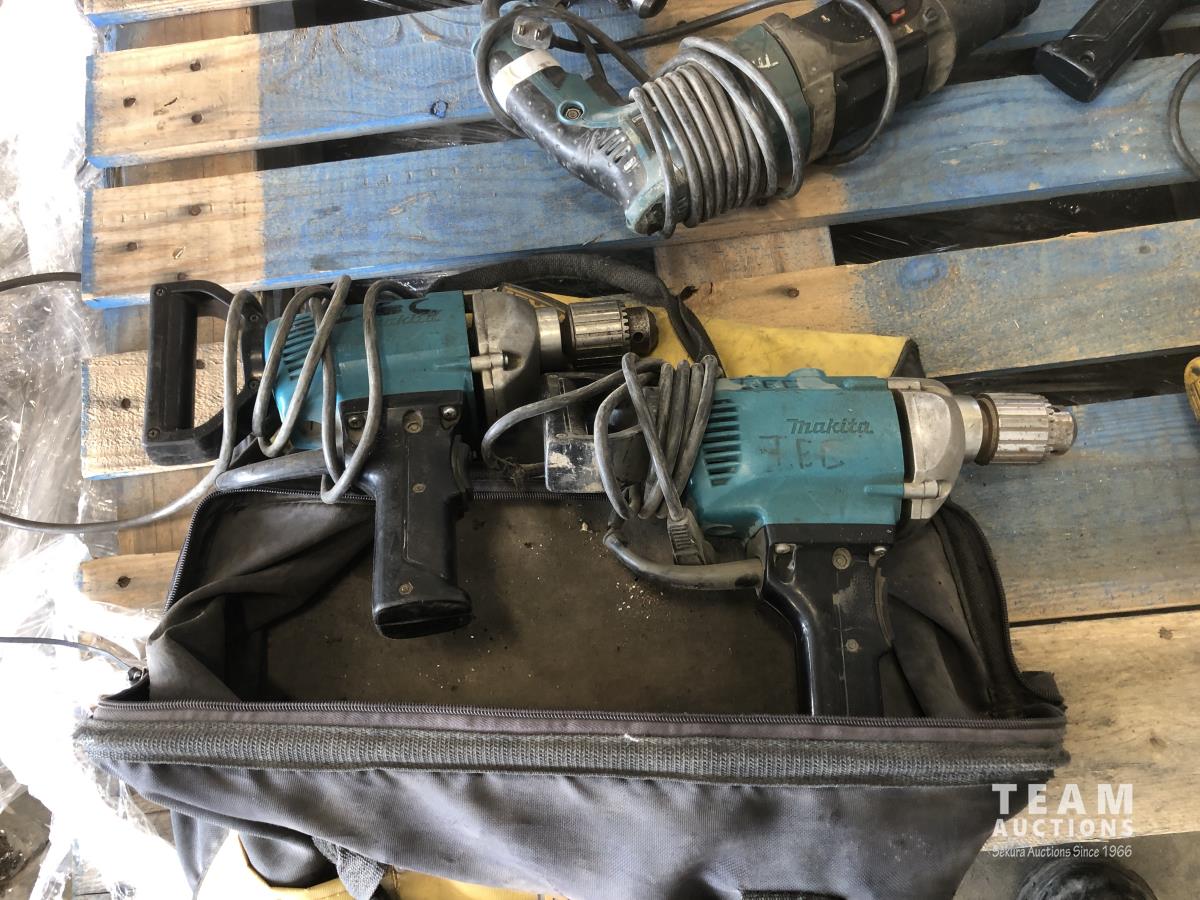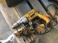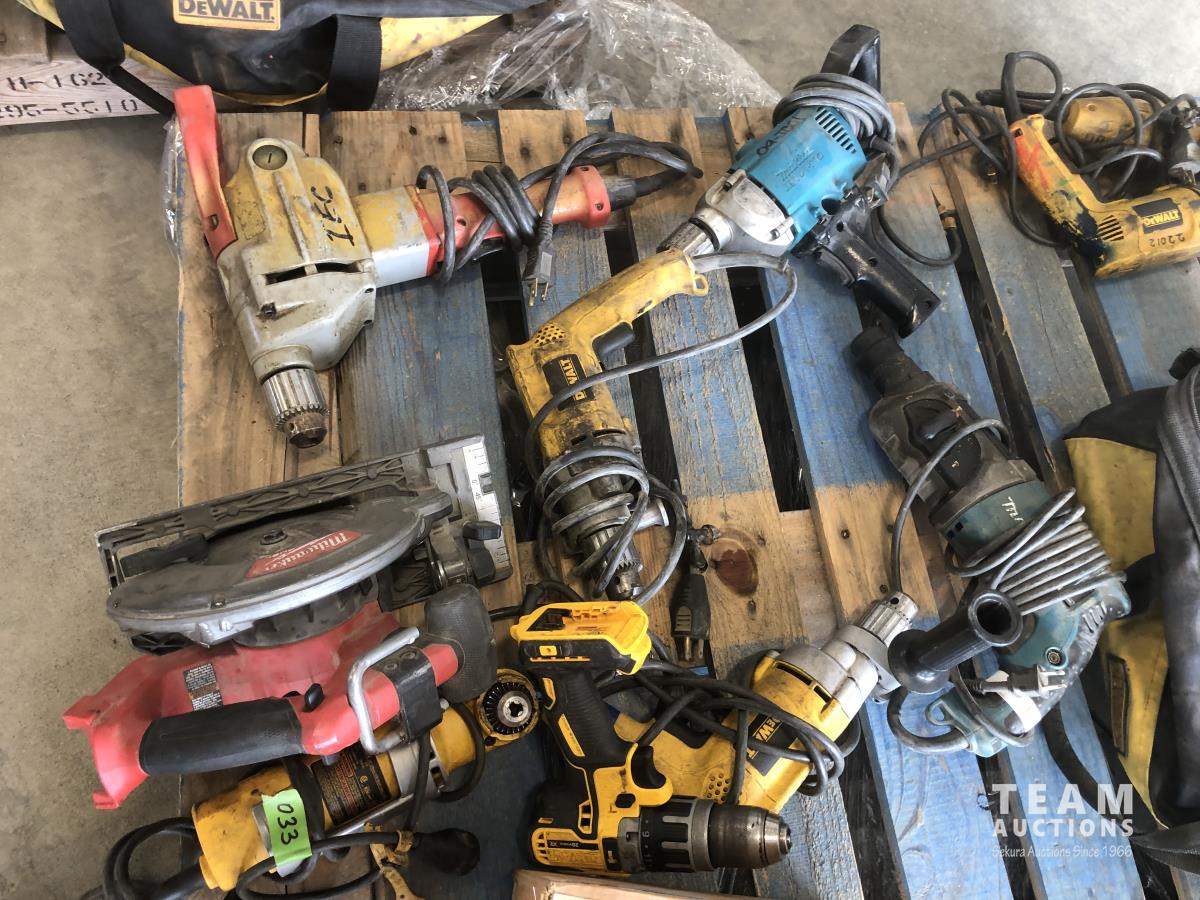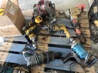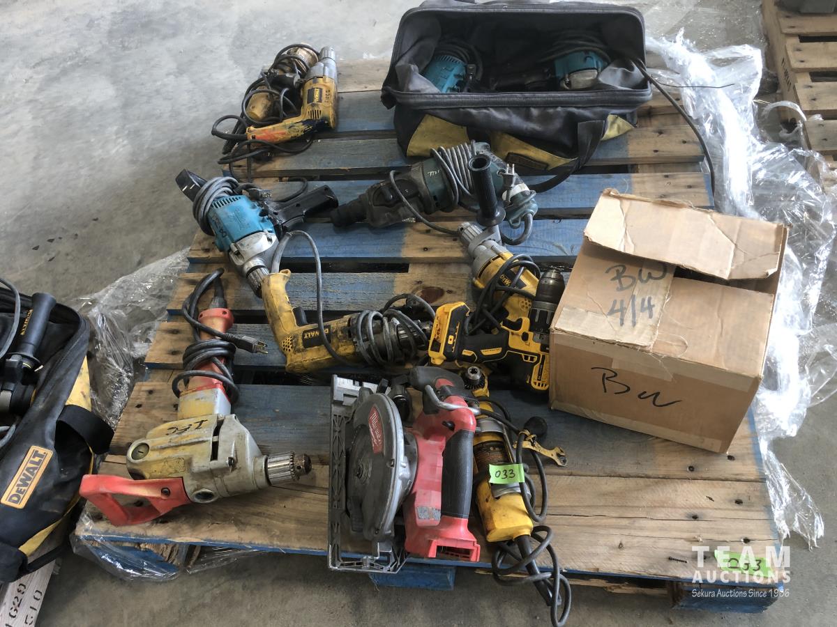 Flagstaff whip holder, quantity of Dewalt, Milwaukee and Makita hammer drills and circular saw