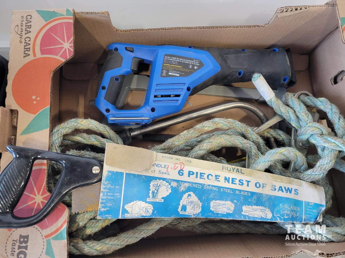 DeWalt DW616/DW618 Router system, Mastercraft 20V reciprocating saw (no battery), (3) hand saws