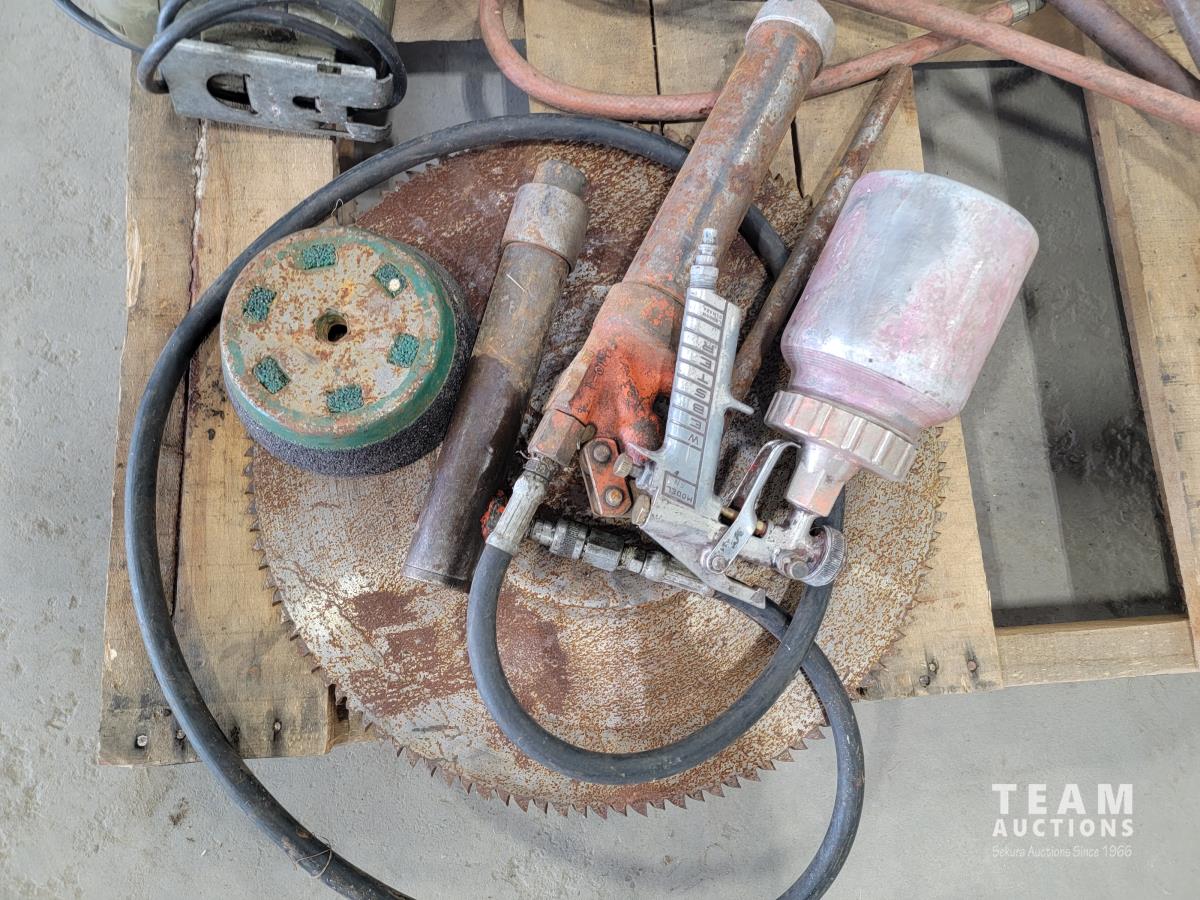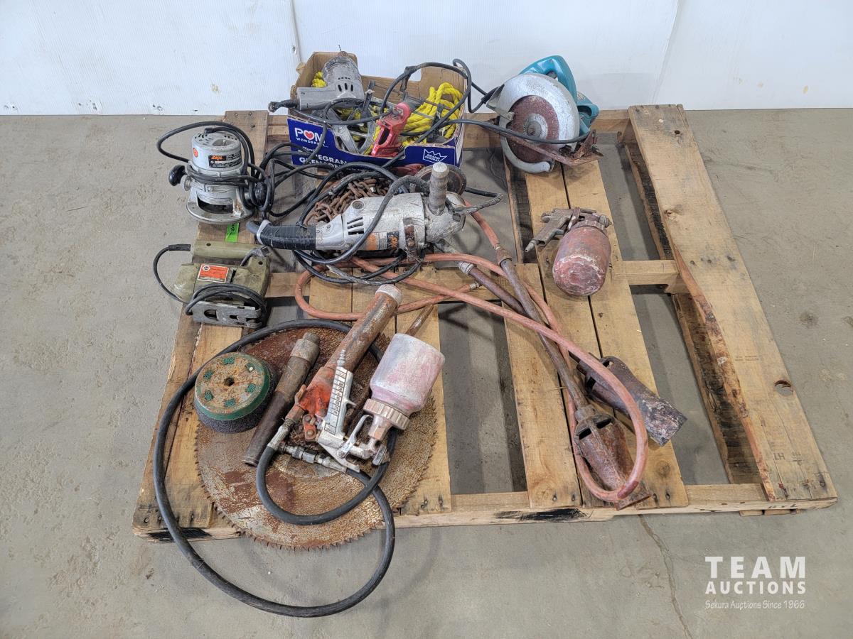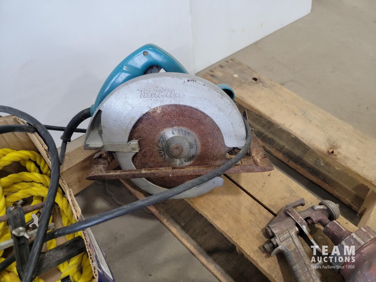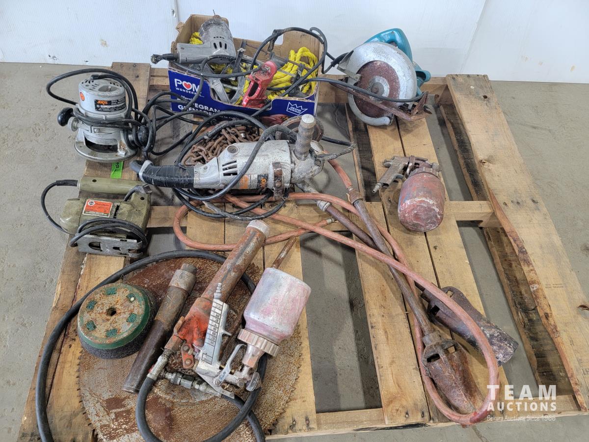 Makita saw, Skil router, Skil grinder, tiger torches, paint sprayers, rope, grease gun