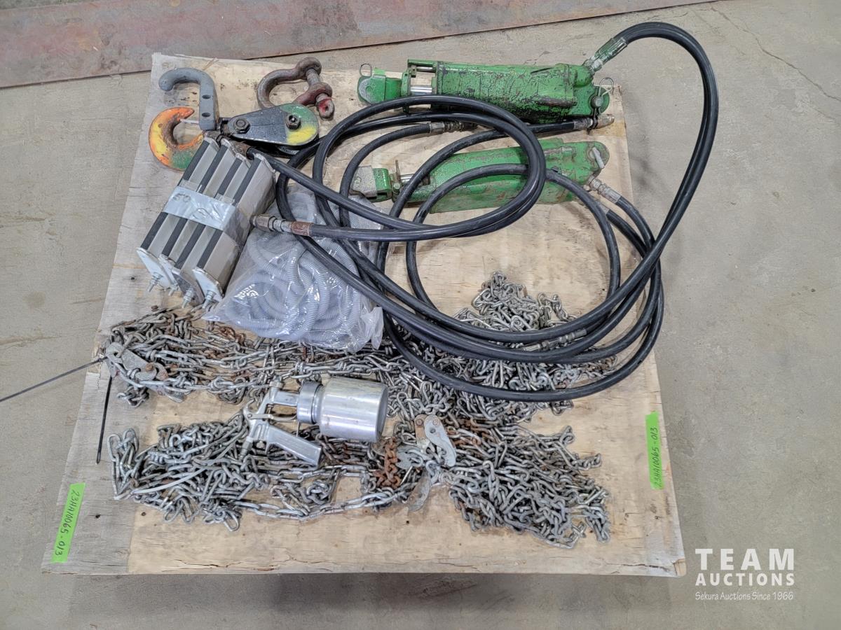 (2) Hydraulic cylinders, (2) sets of mirrors, paint sprayer, plastic hose and qty of chains