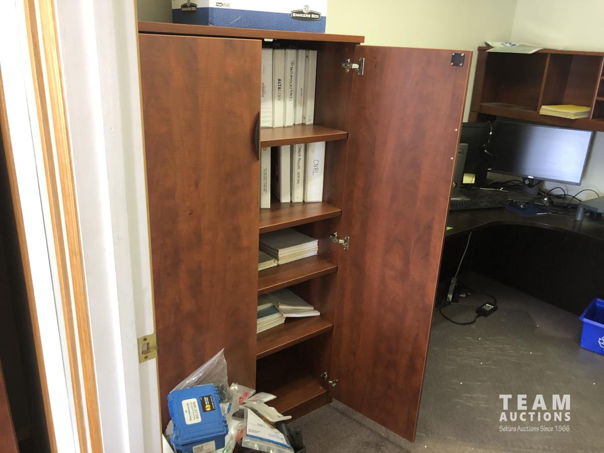 Contents of cabinet and desk not included
