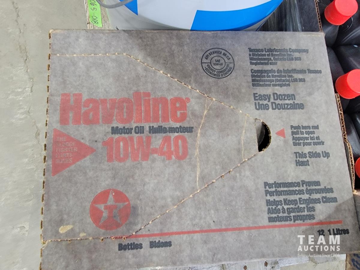 (24) 1 liter Havoline 10w-40 motor oil, (1) pail of ESSO gear oil GX 80w-90 and diesel fuel conditioner
