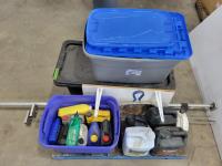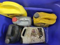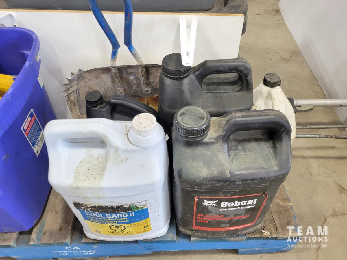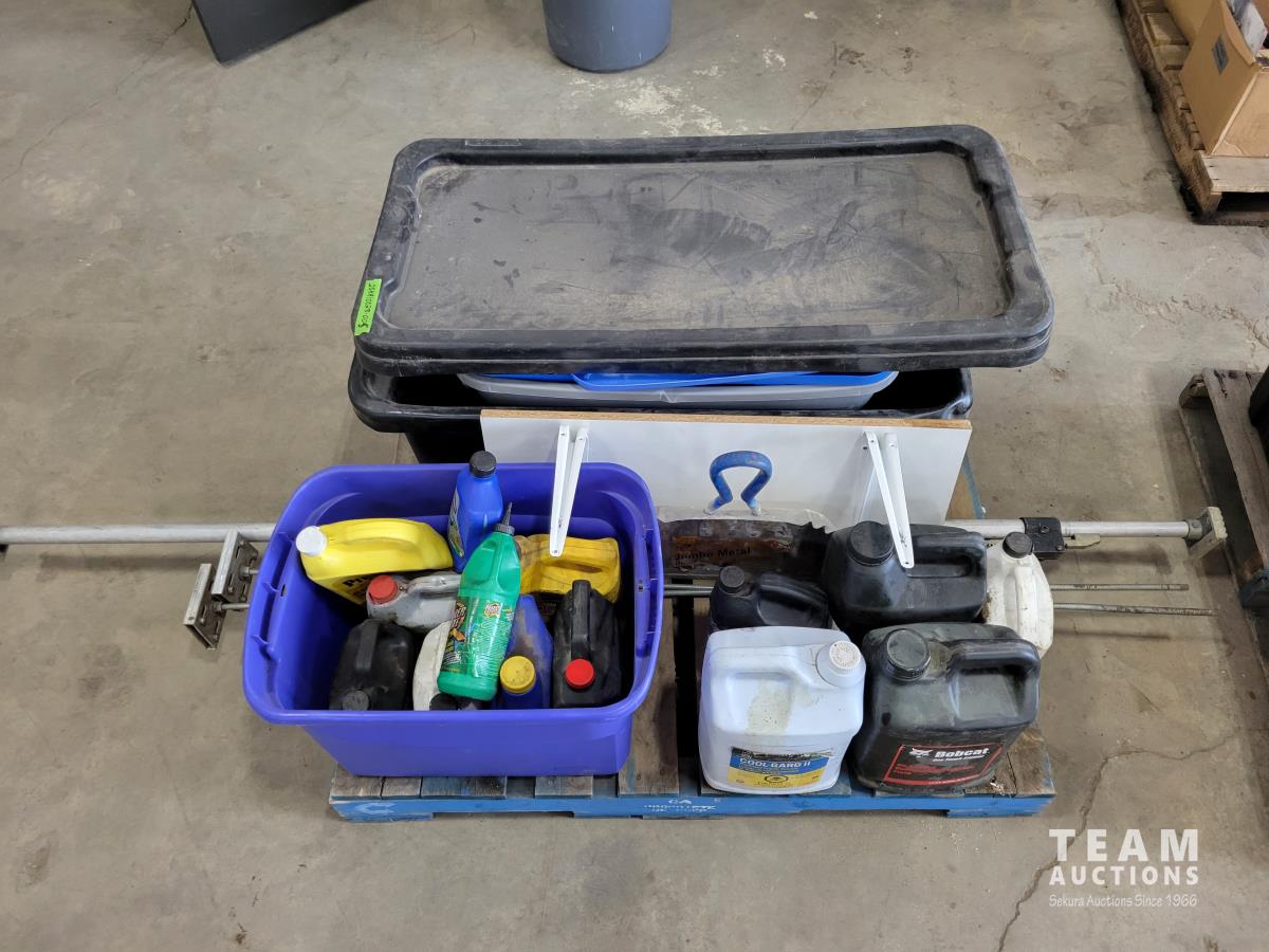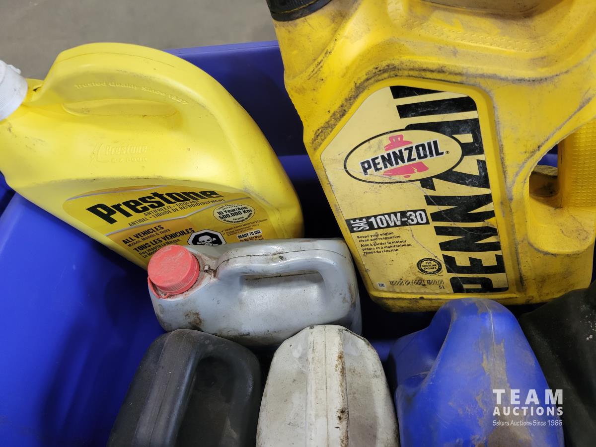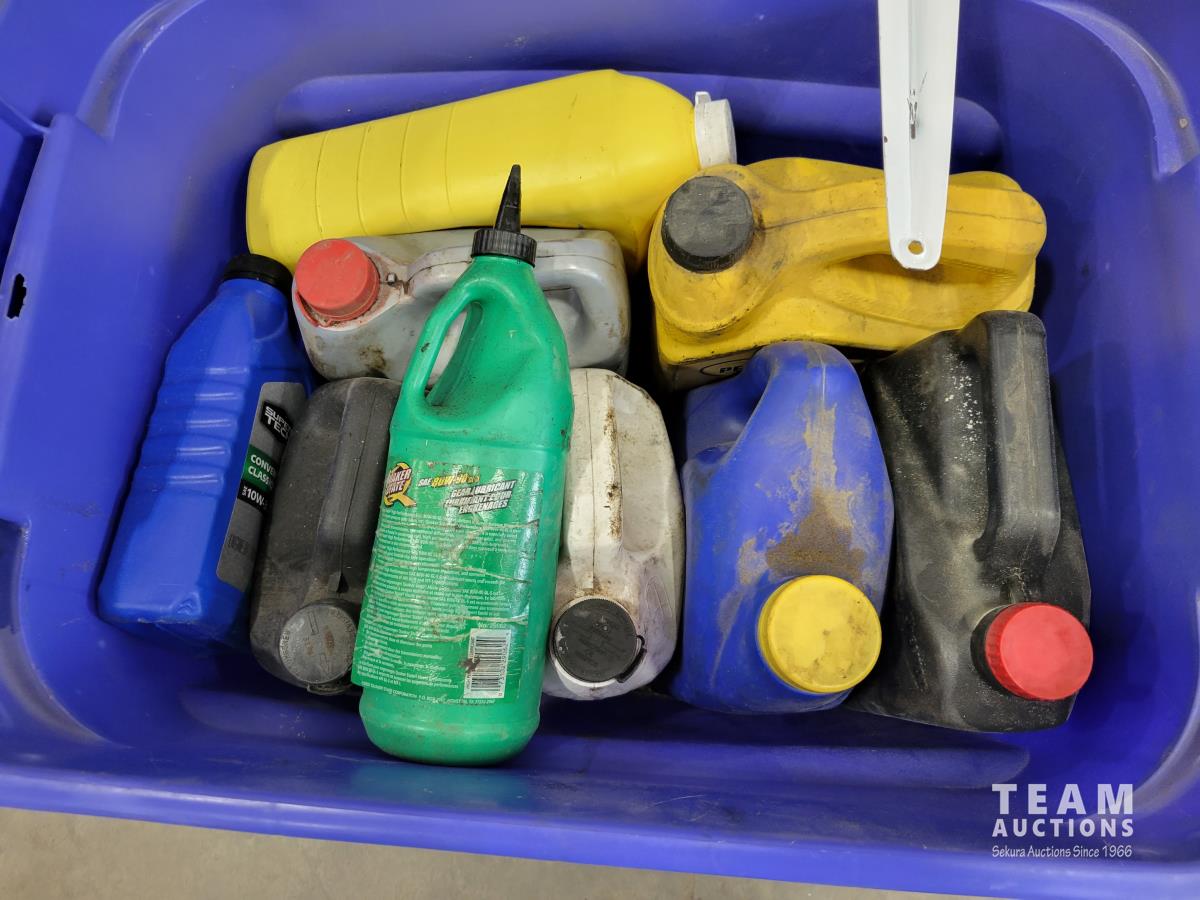 1388 Qty of Shop Fluids, Large Dust Pan and Empty Totes