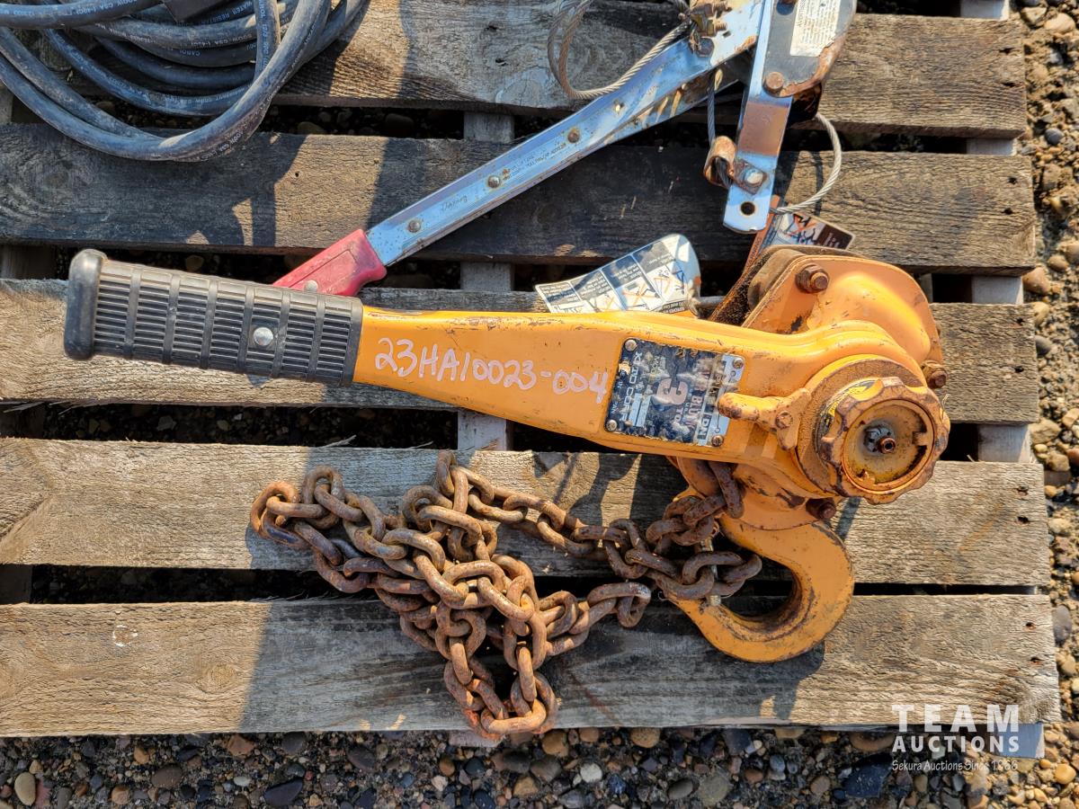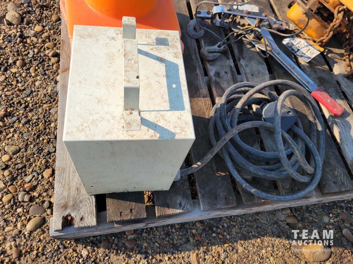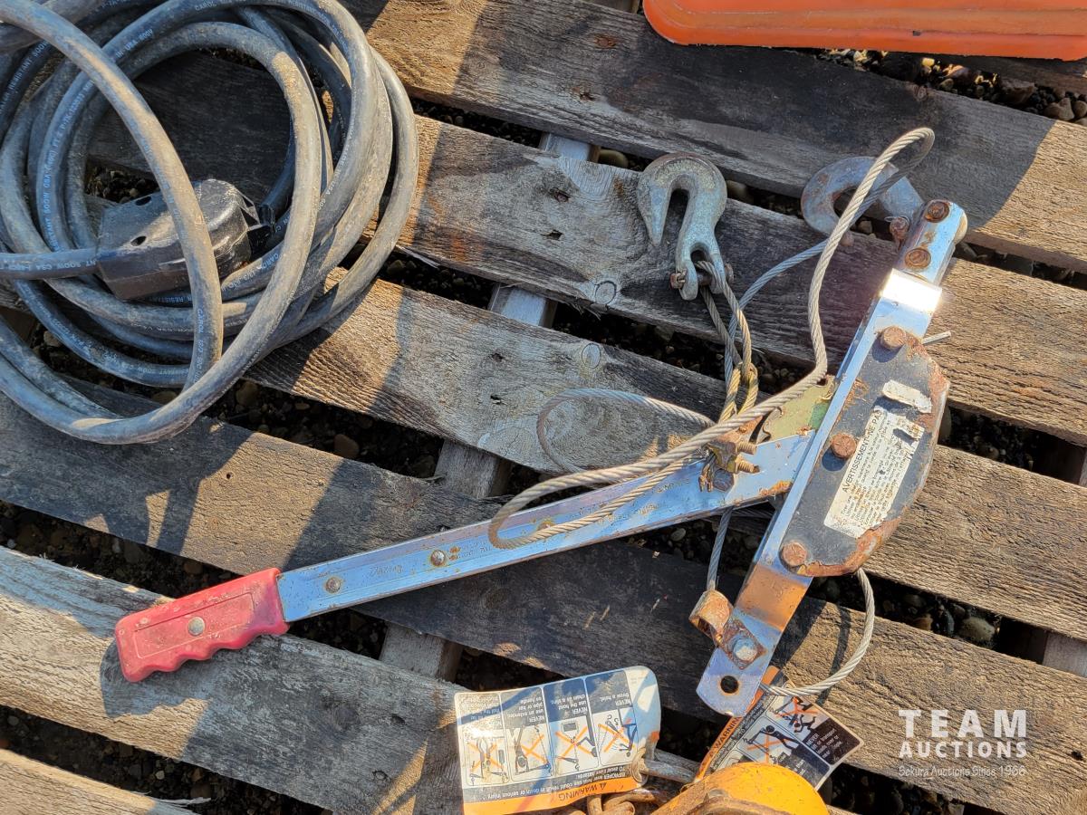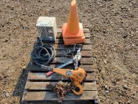 (5) traffic cones, 240v construction heater, 2 ton come-a-long, 3 ton come-a-long