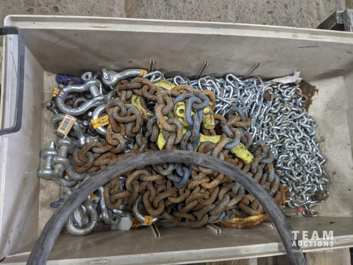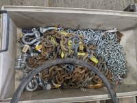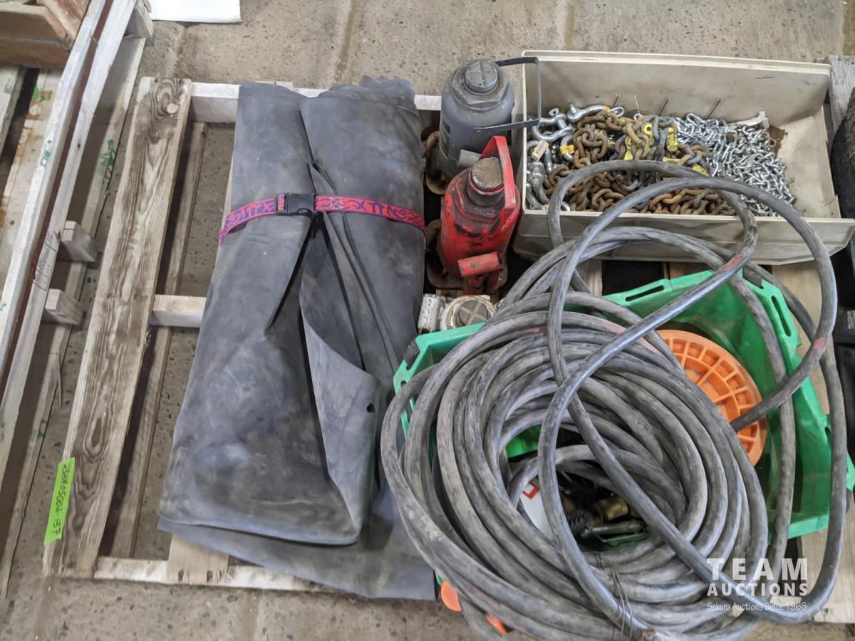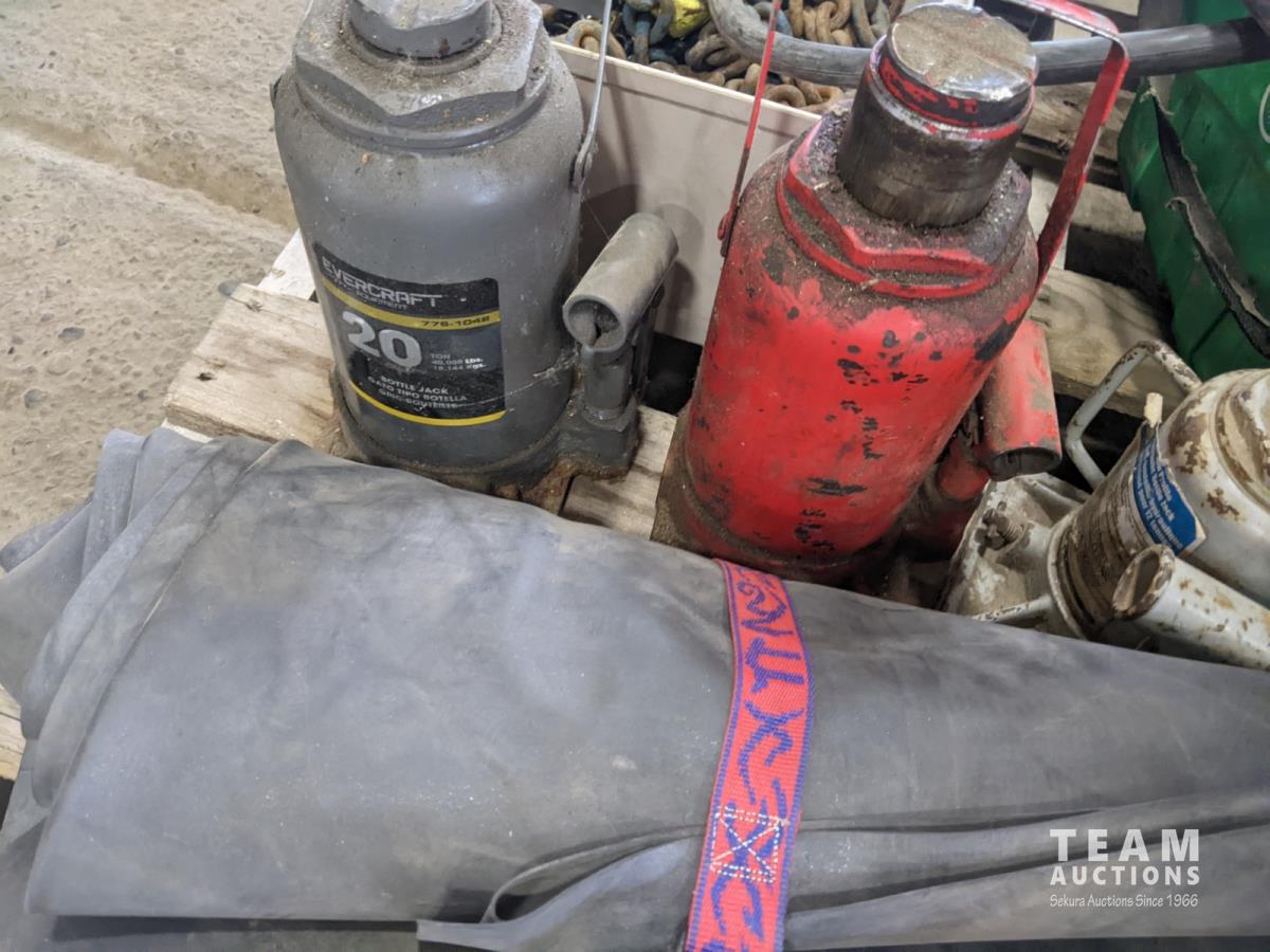 Inner tube, chains, (3) bottle jacks, roll of wire