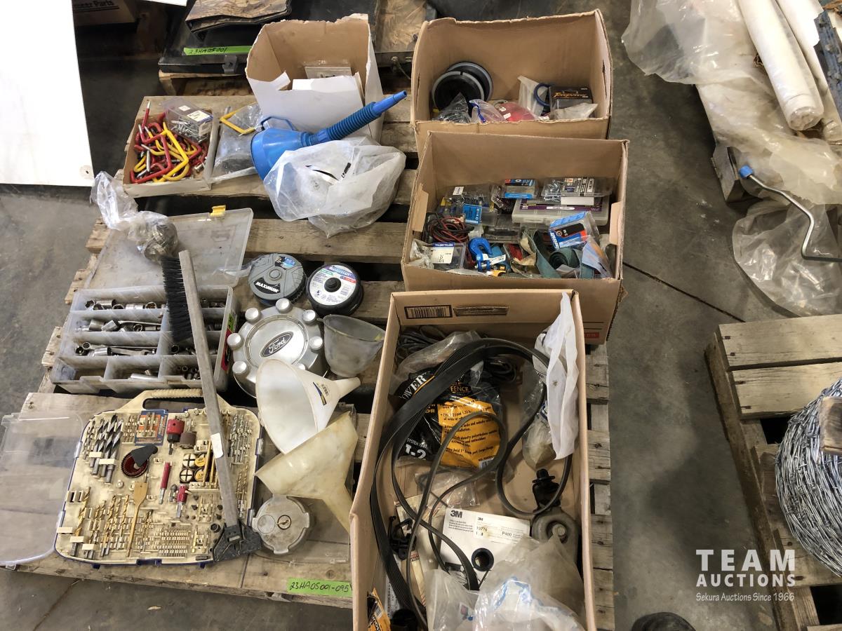 Drill bit sets, sockets, 4.5 inch angle grinder discs, pipe clamps, funnels, miscellaneous hardware