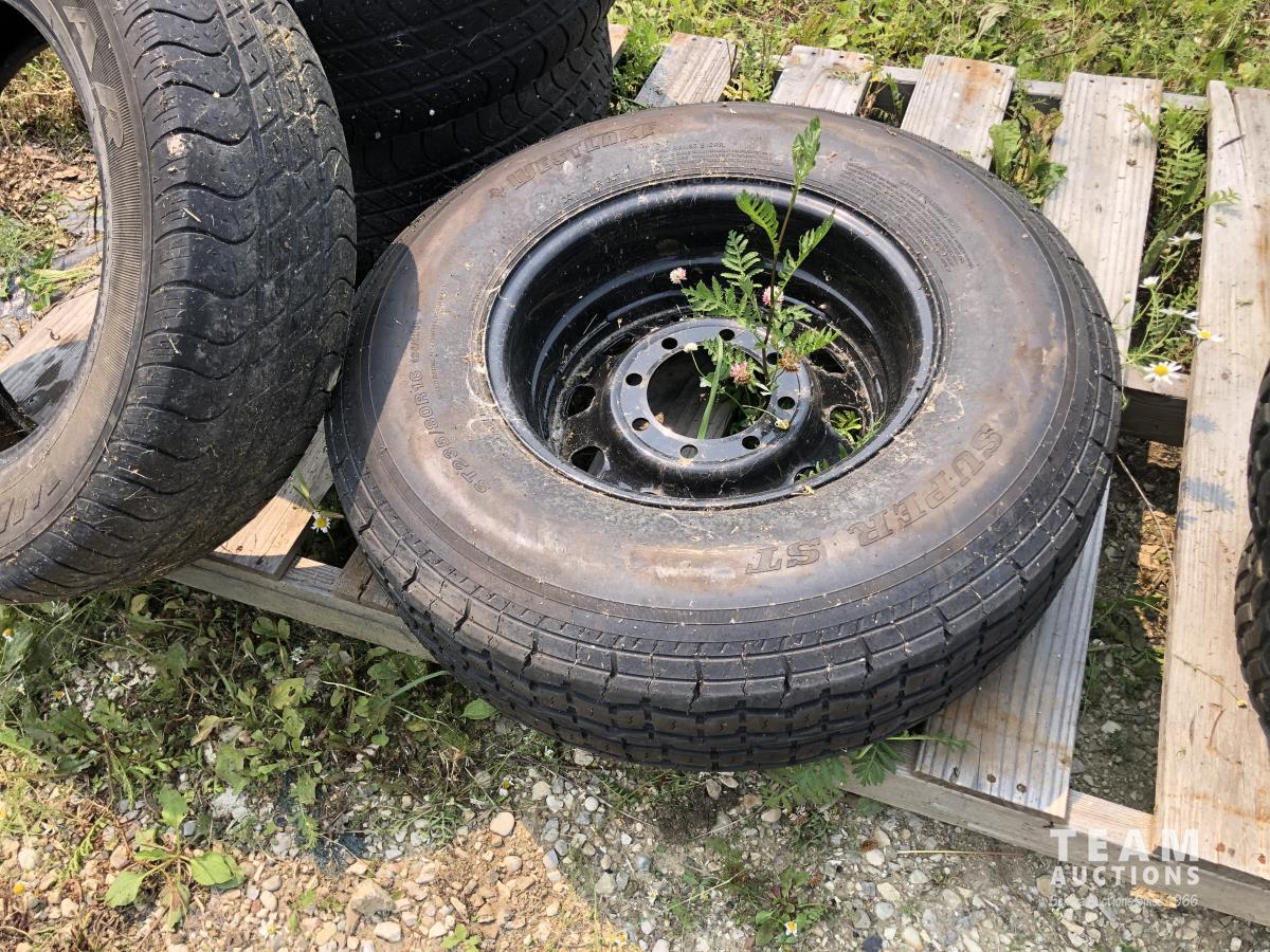 (2) steel rims and tires 23 x 9.50-12, steel rims and tires st235/80R16 and (3) tires p235/65R17