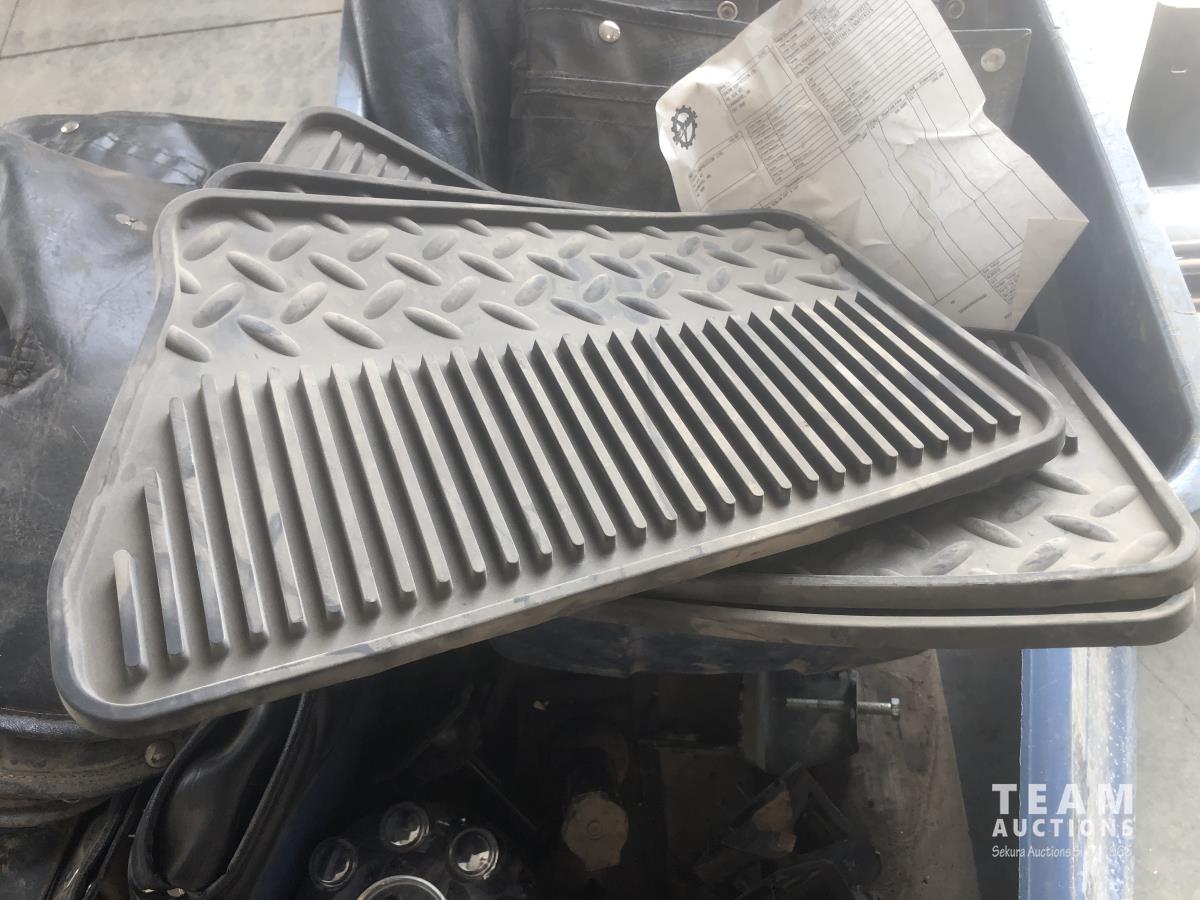 Vehicle floor mats, weather fronts, 7.5 ft running boards for Dodge Ram, (3) Dodge Ram hub caps, trailer torsion bar clamps