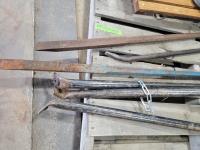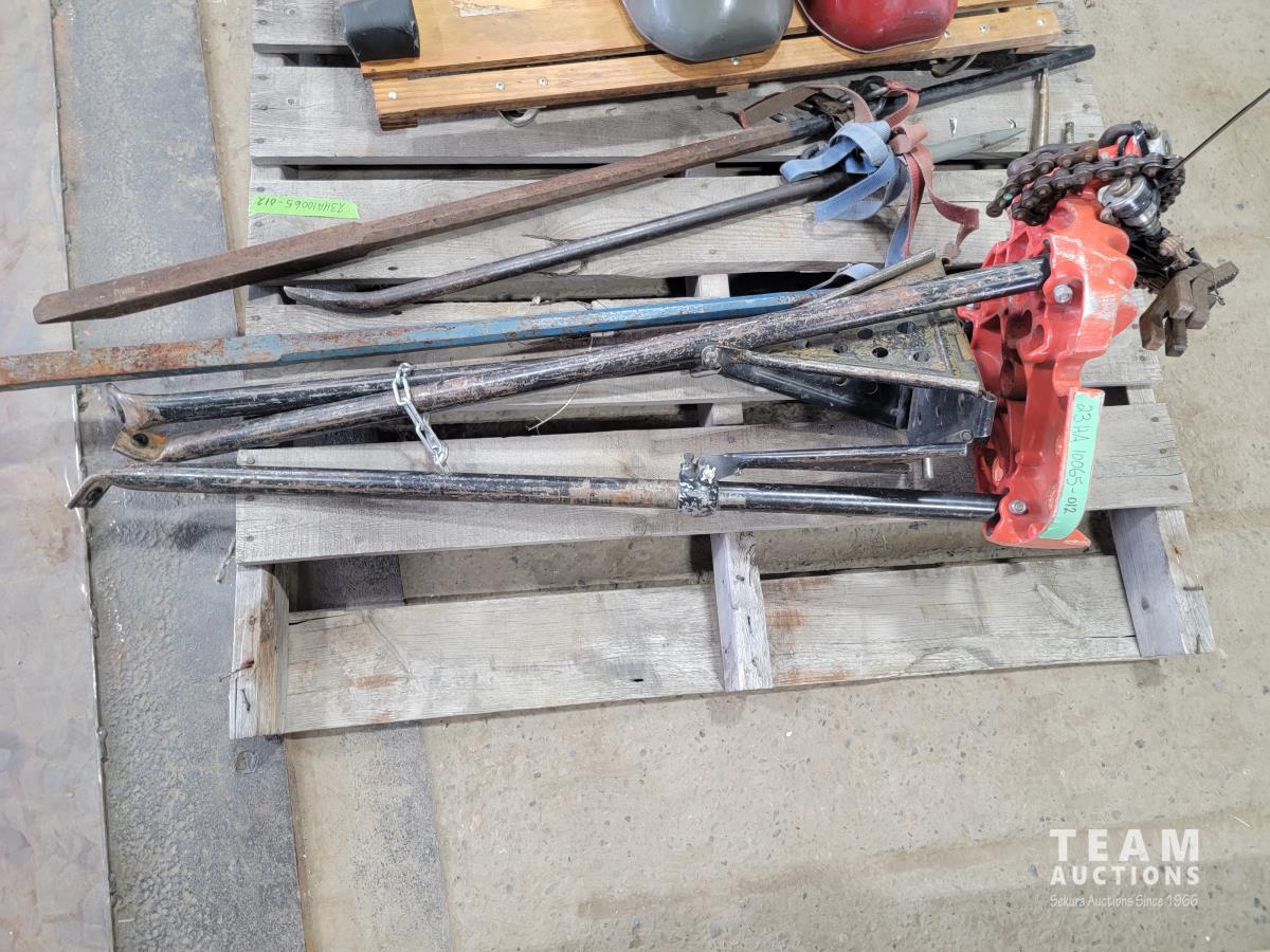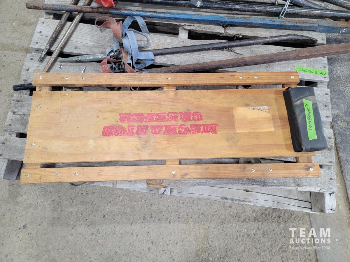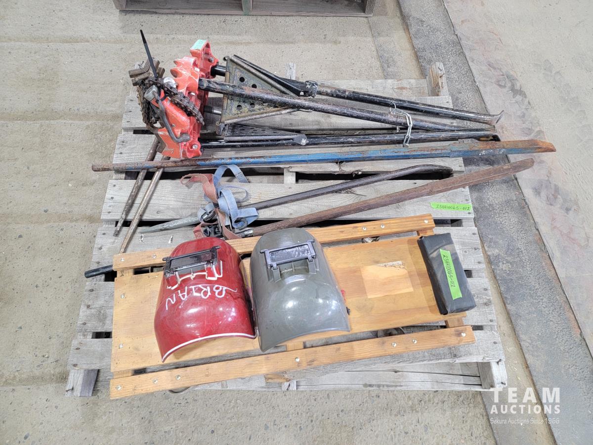 2028 Ridgid Vice Stand, Qty of Pry Bars, Creeper and (2) Welding Helmets