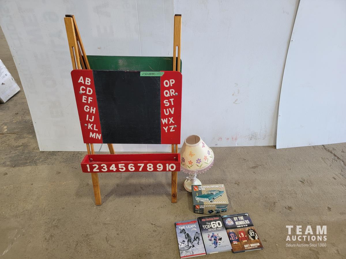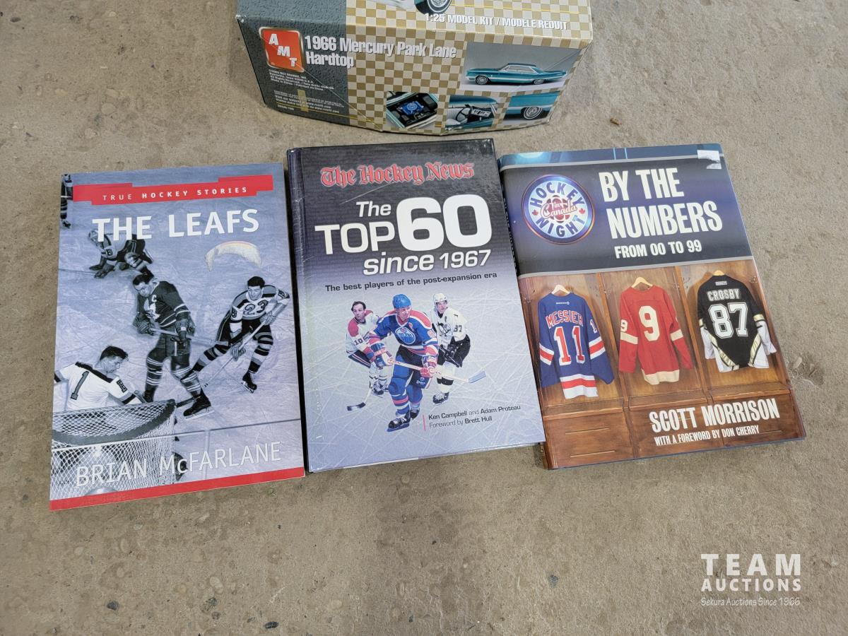 1560 Vintage Kids Chalkboard, 1966 Mercury Park Lane Hard Top Model Kit, (3) Hockey Books