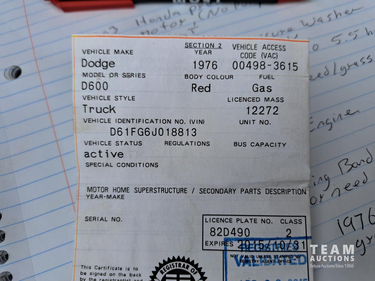 160 1976 Dodge D600 S/A Grain Truck