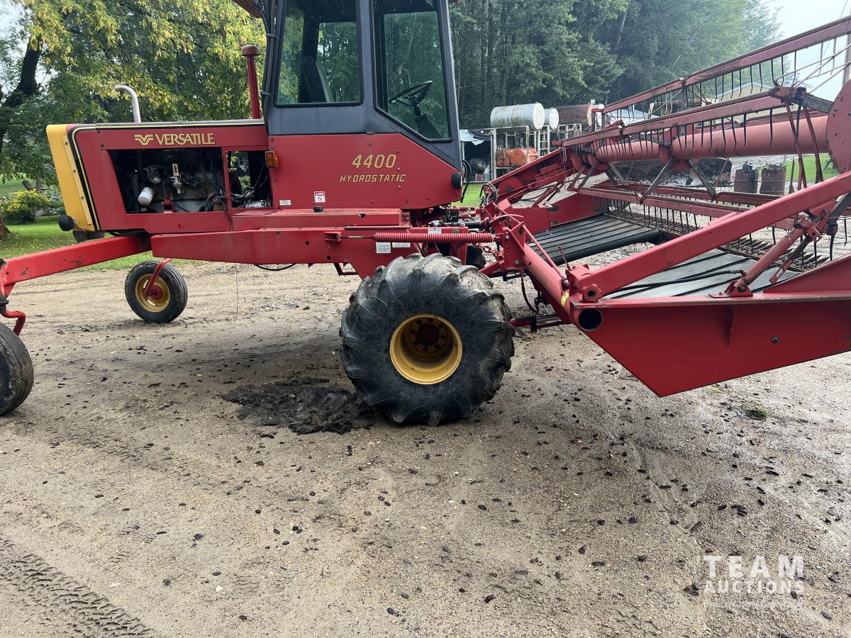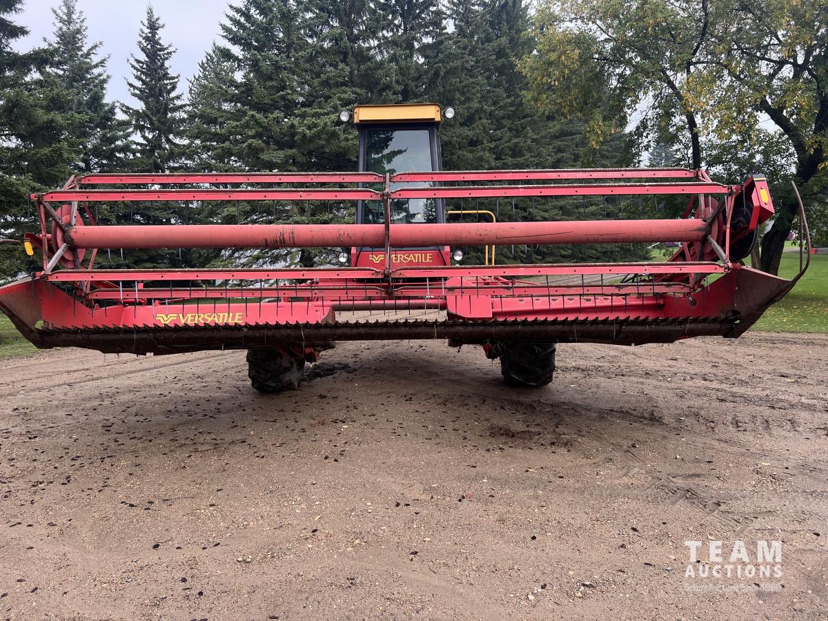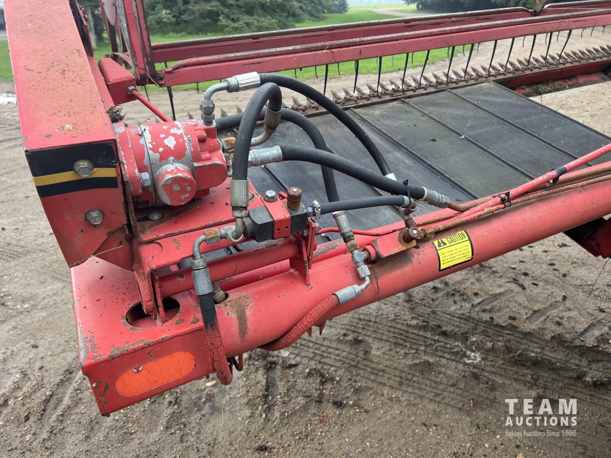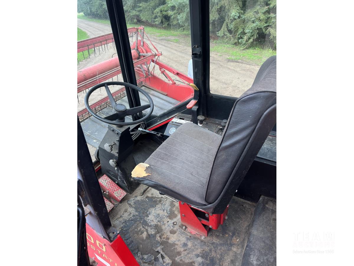 18 ft header, 3.3L Ford 6 cylinder gas engine, hydrostatic drive, cab with A/C and heat, pickup reel, 18.4x16 drive tires