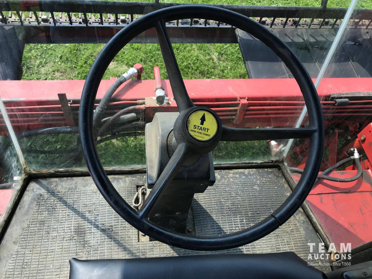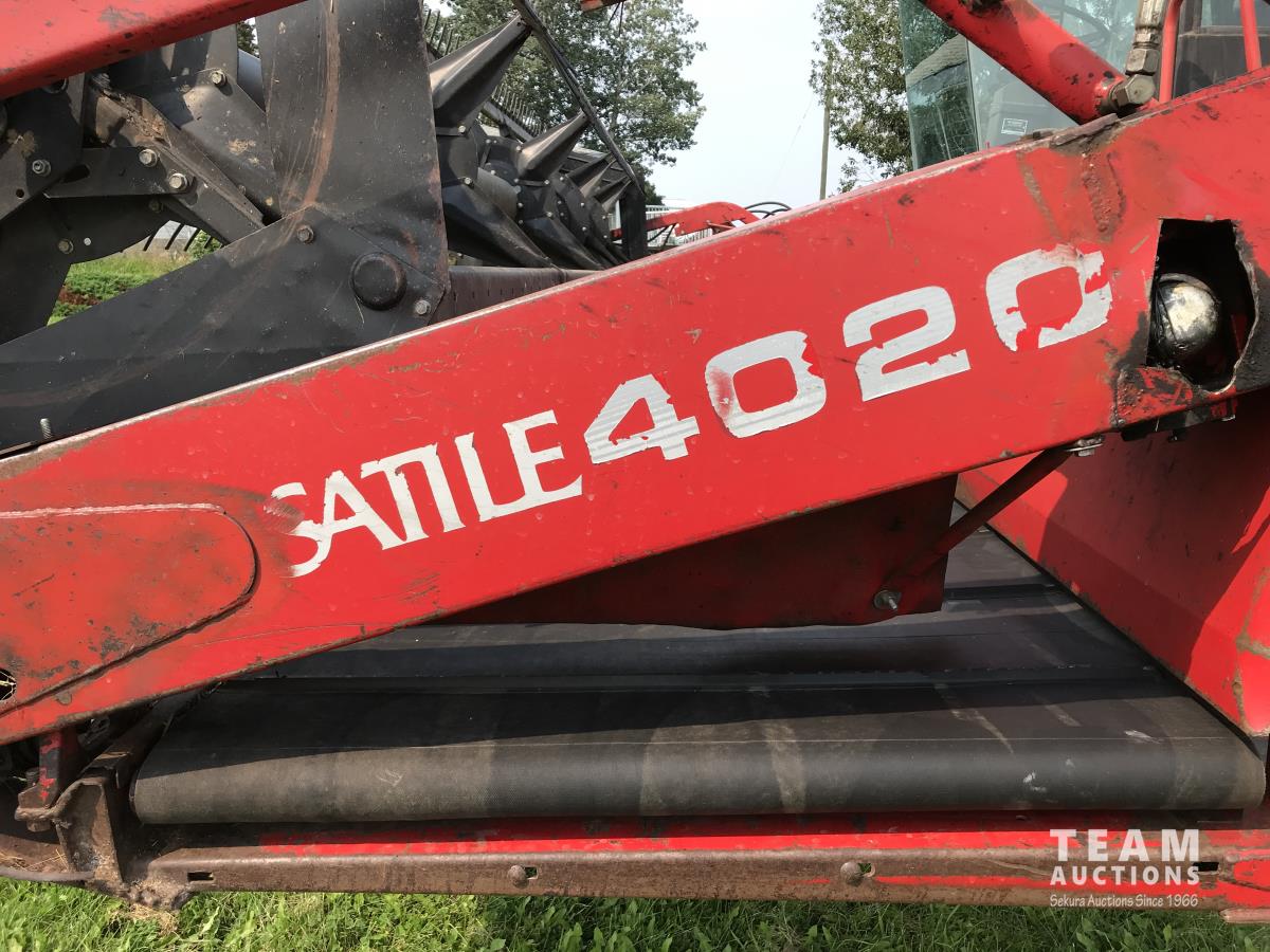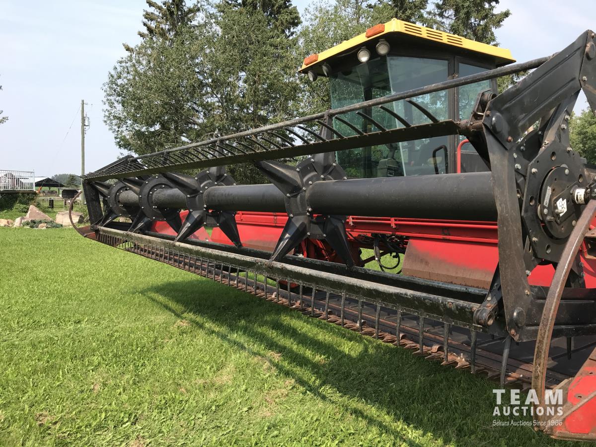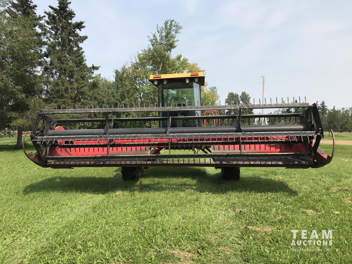 Versatile 4020 20 ft double delivery rigid draper header, Cummins B 4 cylinder diesel engine, A/C, Hart Carter pickup reel,, 17.5L-24 front tires, 5L-14 rear tires