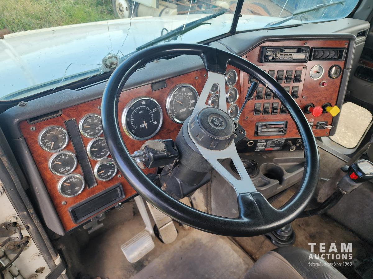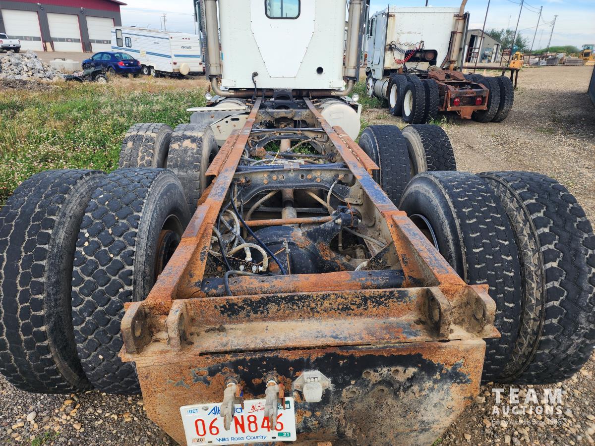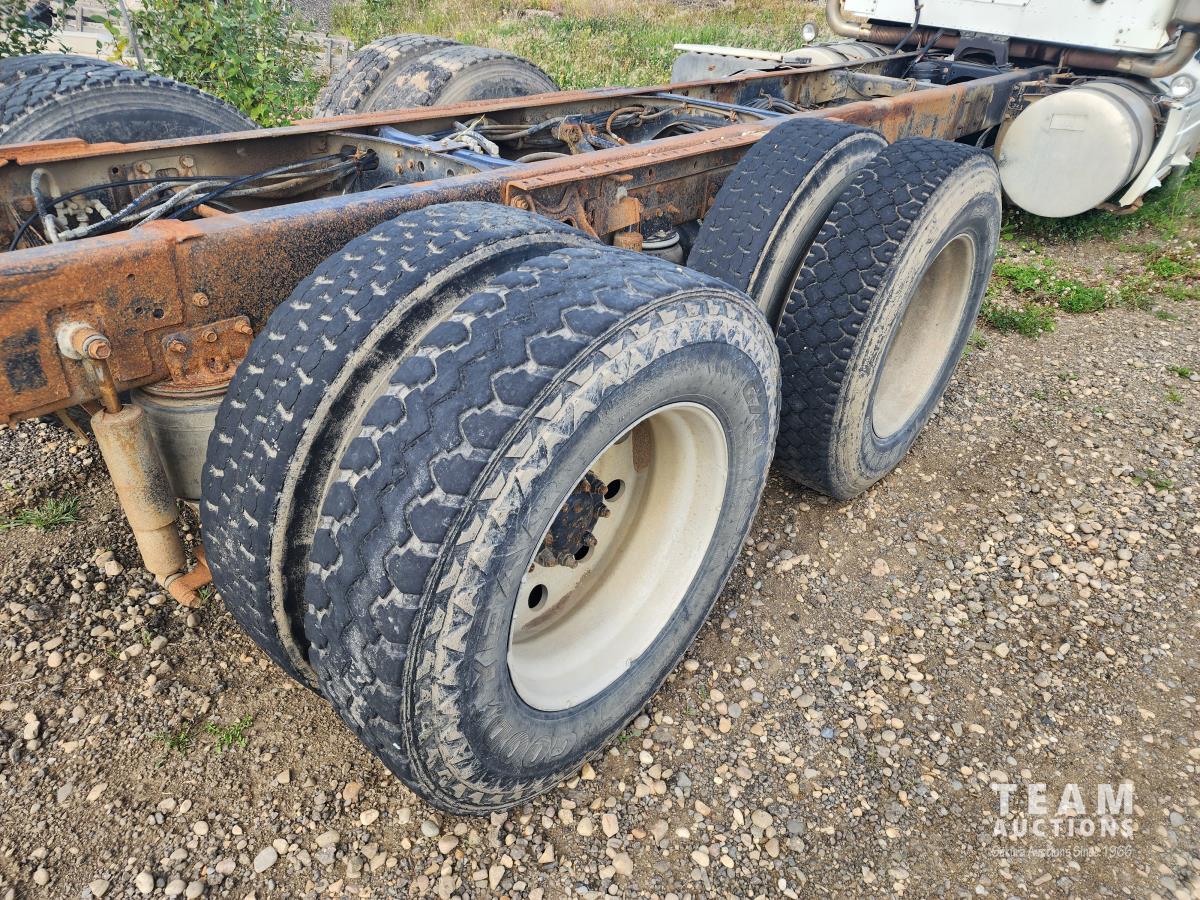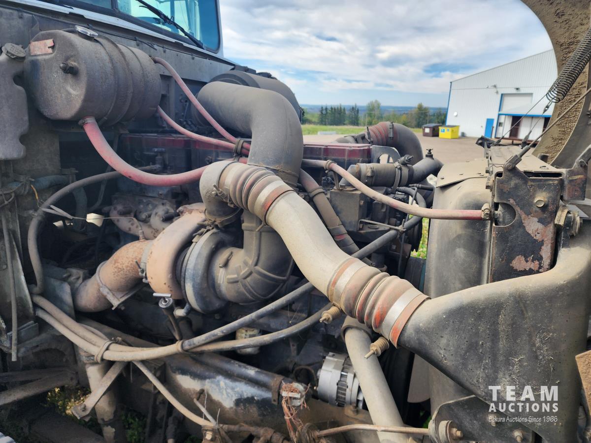 Cummins N14 6 cylinder engine, Eaton Fuller 13 speed transmission, A/C, air ride suspension, 12,860 lb front axle, 40,000 lb rear axles, 209 inch WB, pintle hitch, all aluminum wheels, 11R24.5 tires